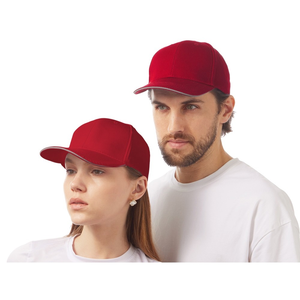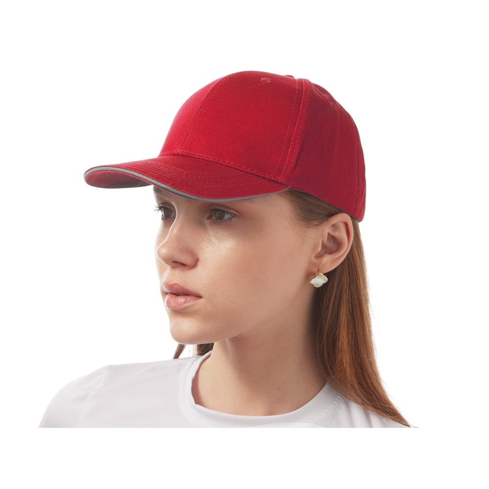 Шестиклинная бейсболка со светоотражающим кантом по козырьку и заднему хлястику - отличный вариант для занятий спортом в вечернее время. Объем регулируется металлической застежкой.