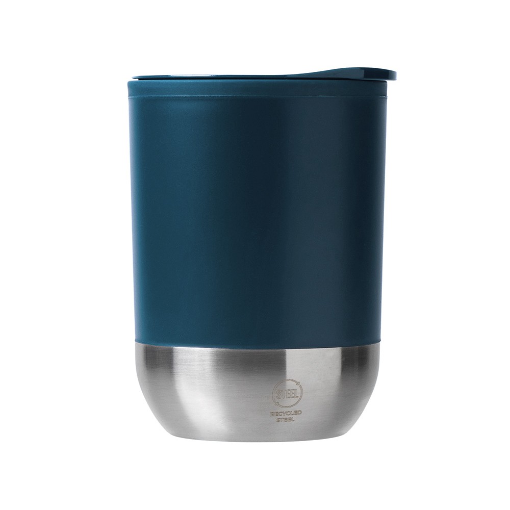 Термокружка с двойными стенками из переработанного полипропилена и дном из нержавеющей стали 304. В комплекте крышка-слайдер. Объём: 290 мл. Поставляется в экологичной коробке.