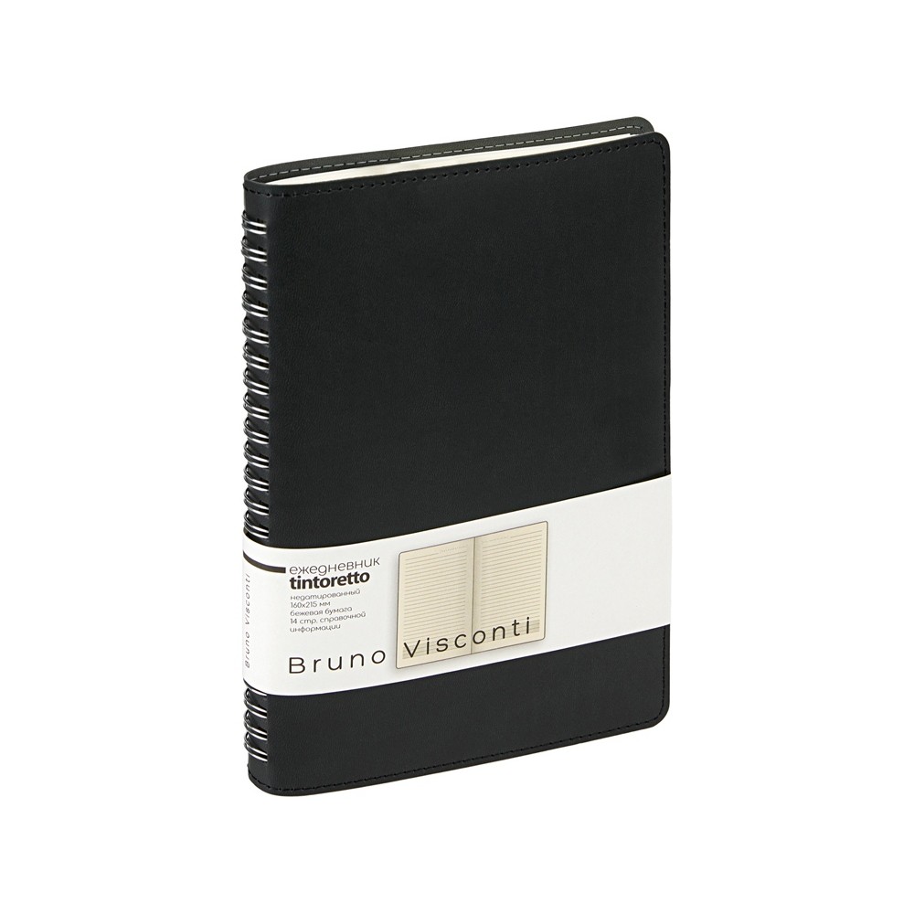 Недатированный ежедневник формата А5 "Tintoretto" ТМ Bruno Visconti - практичное решение для тех, кто любит ежедневники на «пружине». Полускрытый гребень позволяет держать ежедневник открытым на столе и комфортно вести записи. 272 страницы блока произведены из превосходной бежевой бумаги плотностью 70 г/кв.м, а неброская линовка каждой страницы позволяет не отвлекаться на лишние детали. Гибкую обложку из искусственной кожи украшает отстрочка декоративной нитью по краю.