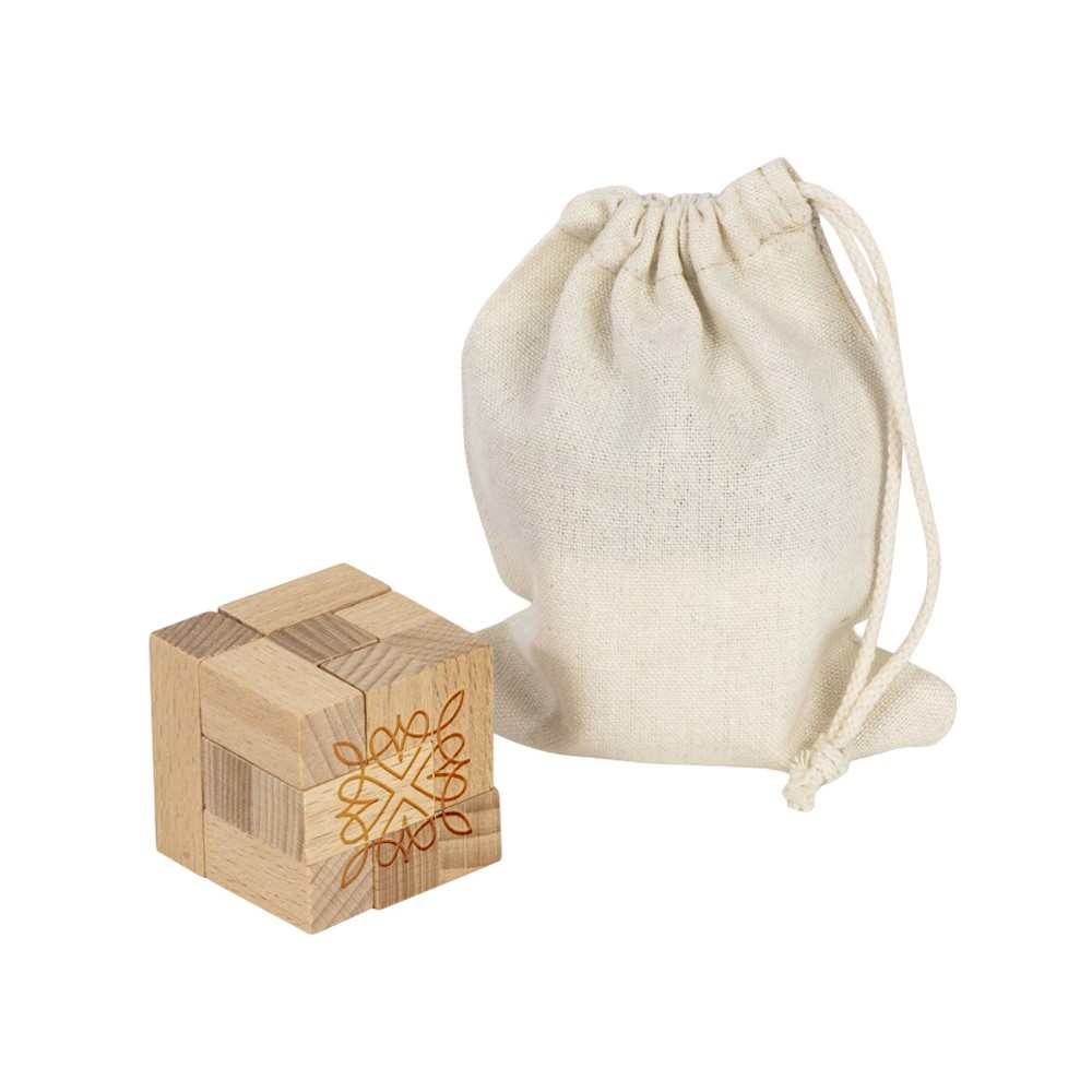 Состоит из семи деревянных деталей, поставляется в хлопковом мешочке на завязках. Кастомизация возможна, как на самих деталях, так и на мешочке.