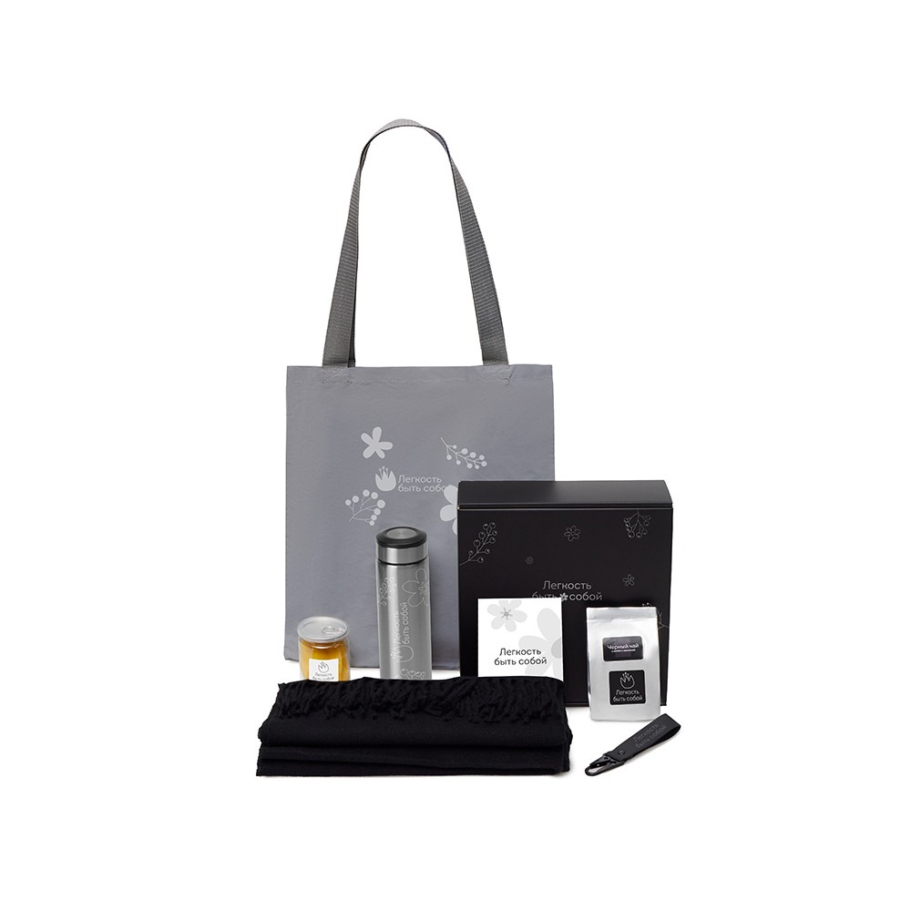 • Подарочный набор «Re:f. Walk» с палантином, шоппером и термосом, черный