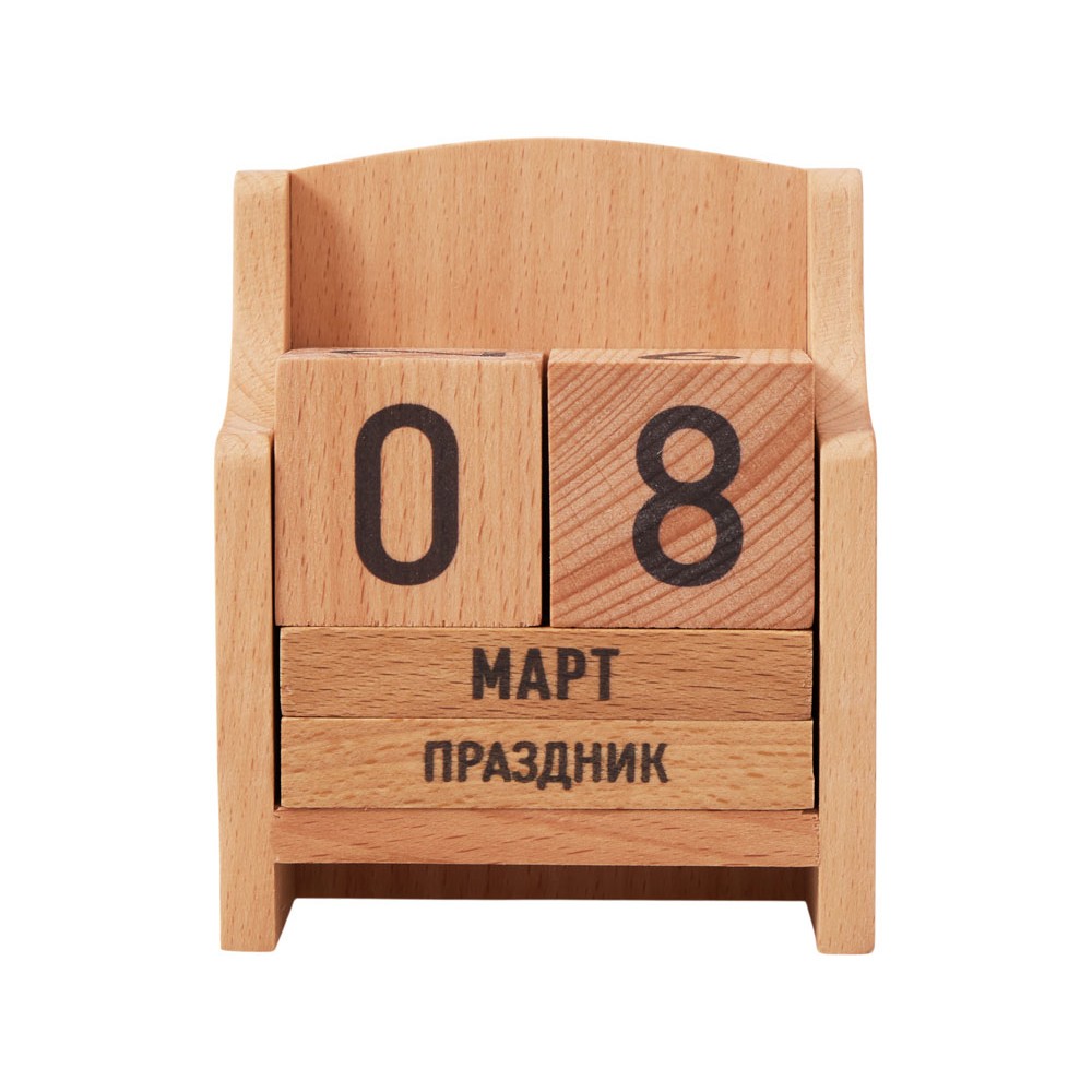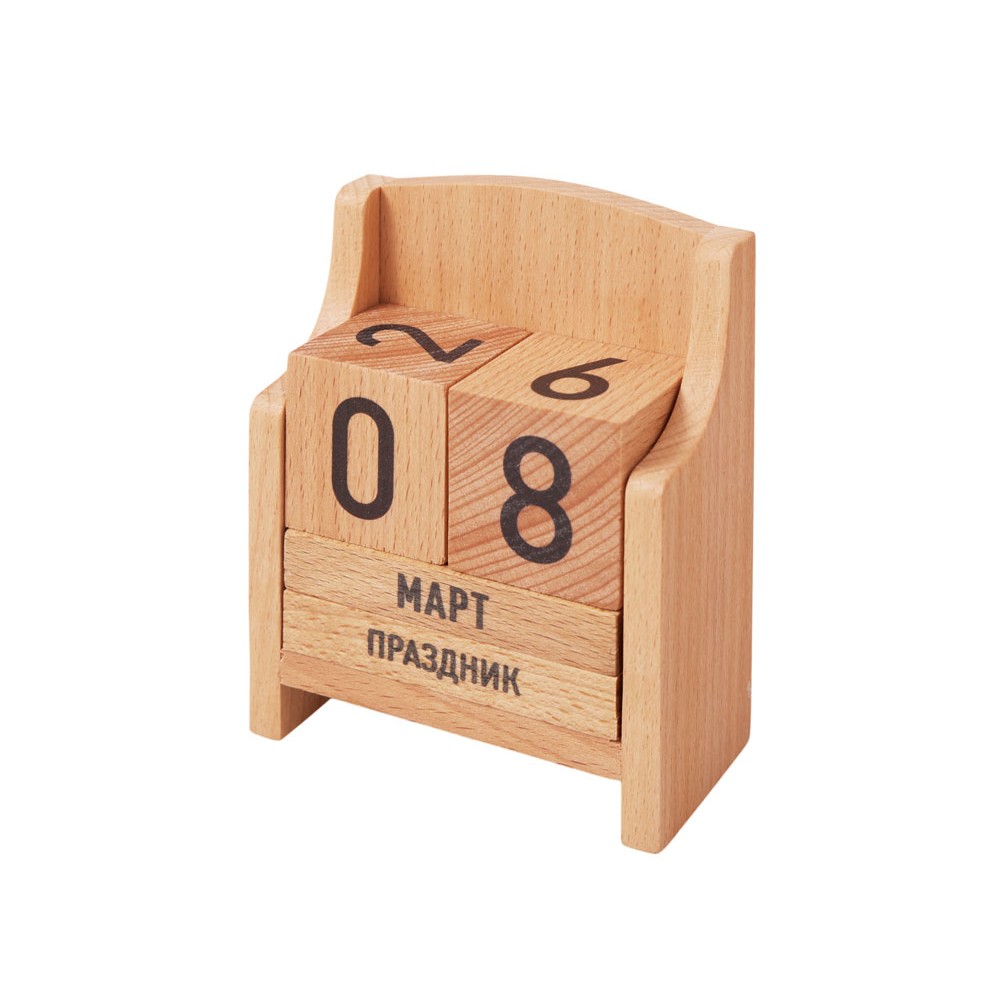Стильный и функциональный календарь из натурального бука станет элегантным украшением рабочего стола или интерьера. Помимо стандартных дат календарь включает 12 «поводов» — дни недели и настроения, которые можно отмечать каждый день, создавая настроение и отмечая особые моменты.