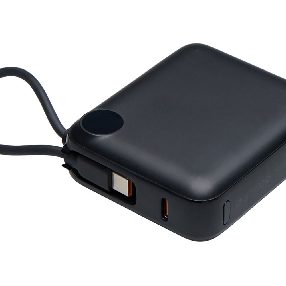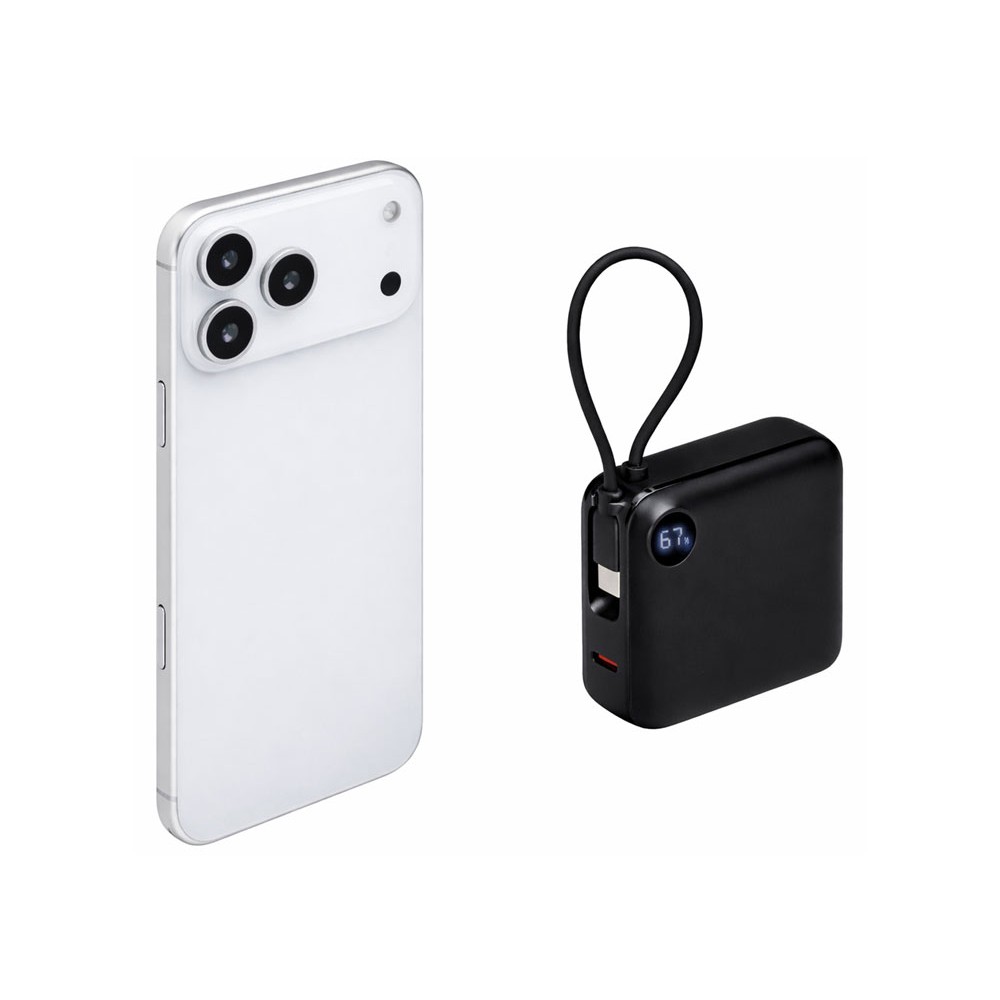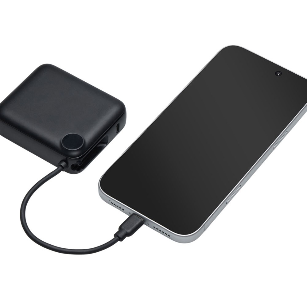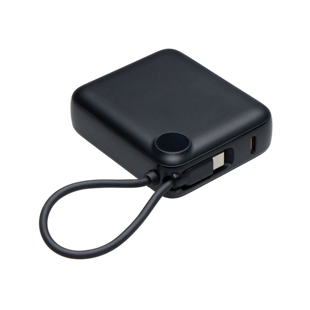 - Встроенный двунаправленный кабель-петелька USB-C — всегда под рукой! Заряжает смартфоны по USB-C (в т.ч. новые iPhone), а также заряжается сам по встроенному кабелю.