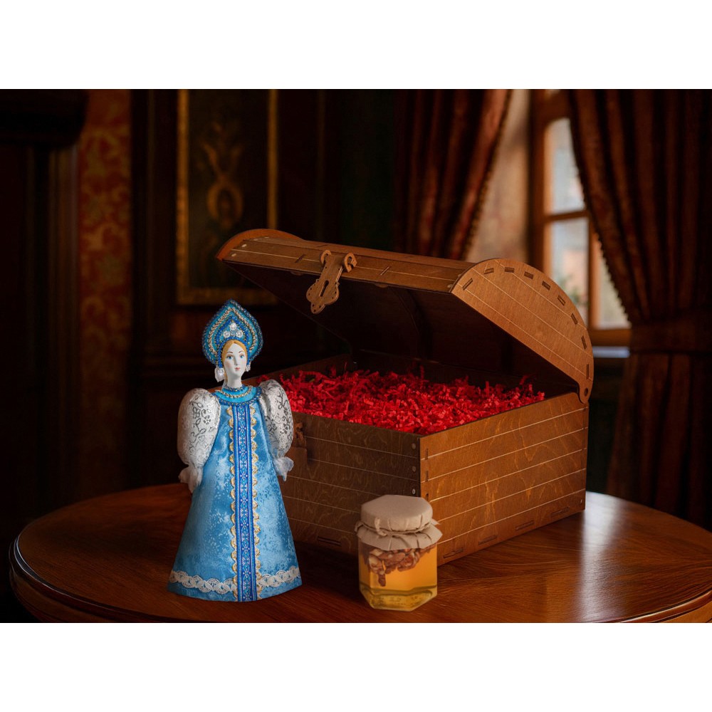 Подарочный набор словно сошёл со страниц русской сказки: в нём гармонично переплелись изящество ручной работы и щедрость родной природы. Каждый элемент продуман до мелочей, чтобы создать неповторимую атмосферу тепла и исконно русского гостеприимства.