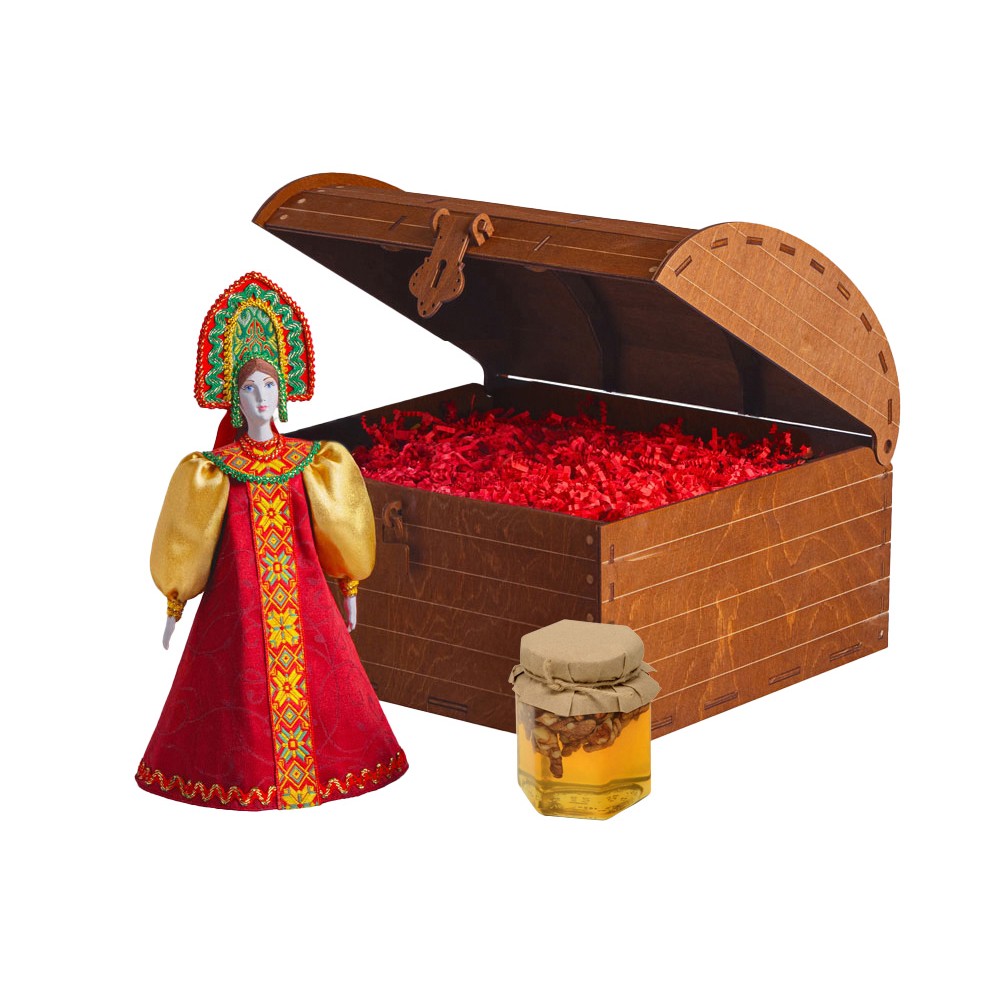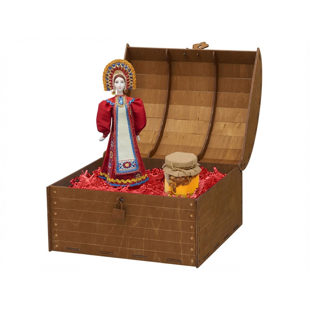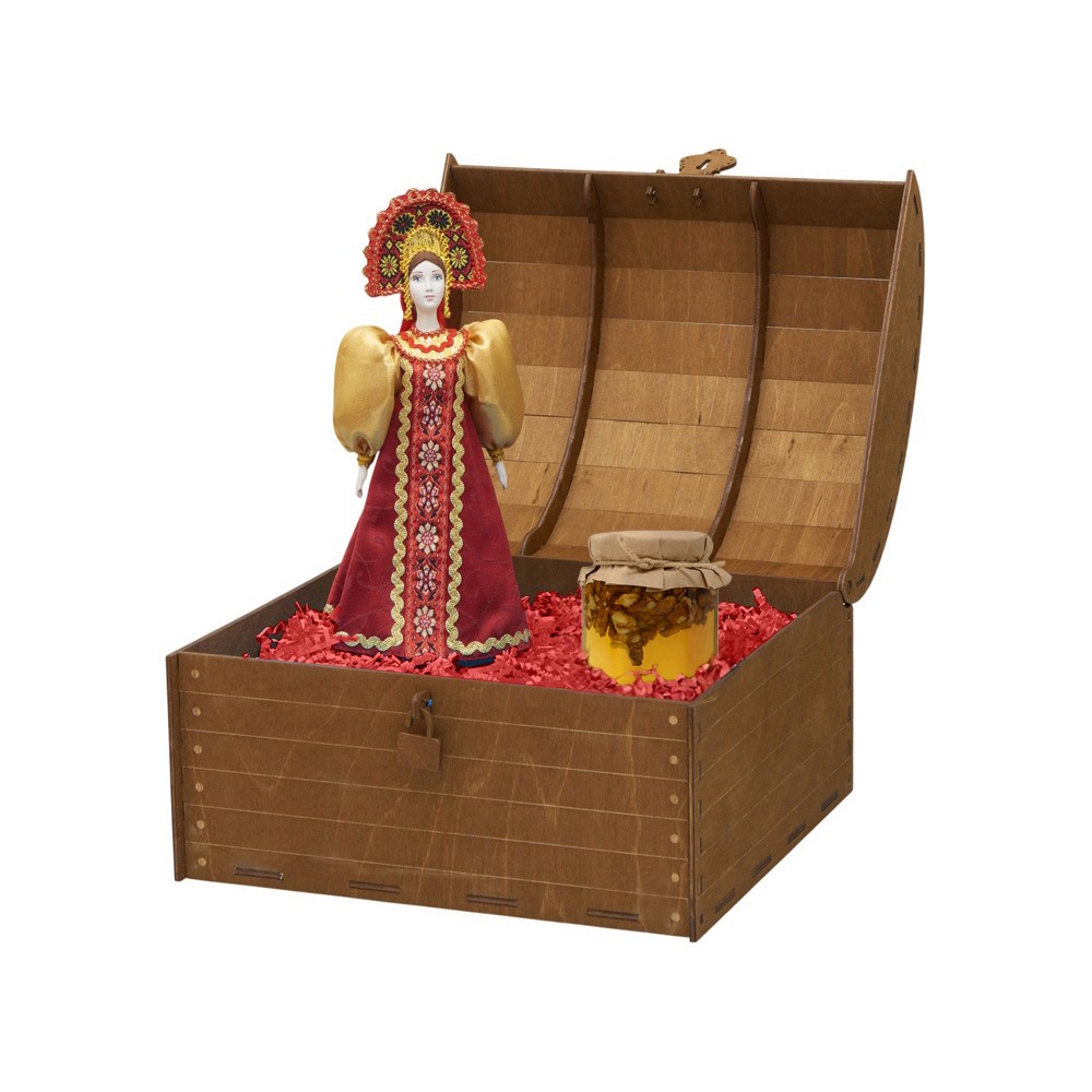 Вес1600 Комплектностькукла фарфоровая 25±3 см, мёд с грецким орехом, 250 г. Материал товаракукла- фарфор/текстиль, сундук- дерево