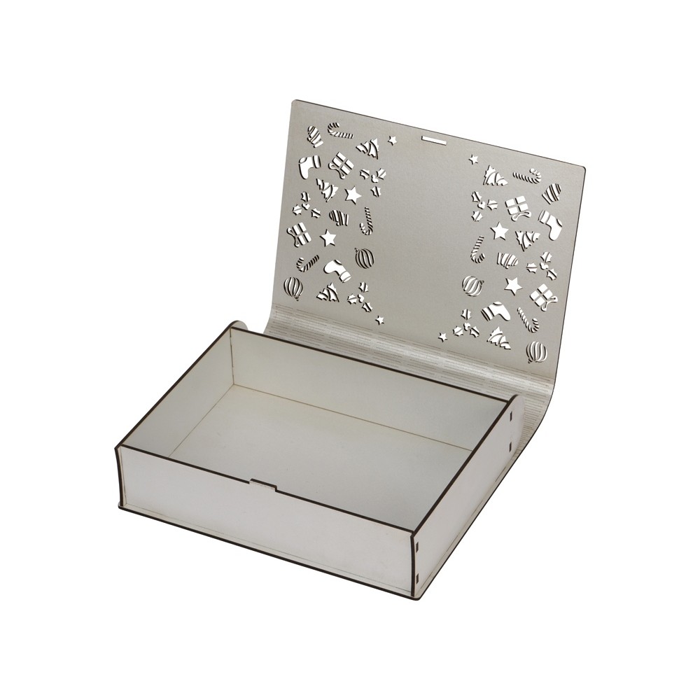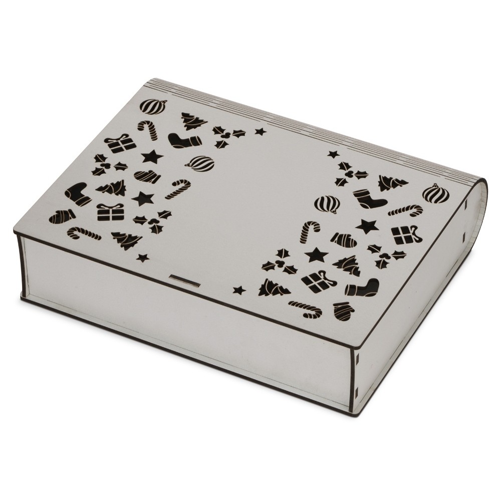 Подарочная коробка в виде книги с новогодним дизайном удивит получателя подарка своим запоминающимся дизайном.