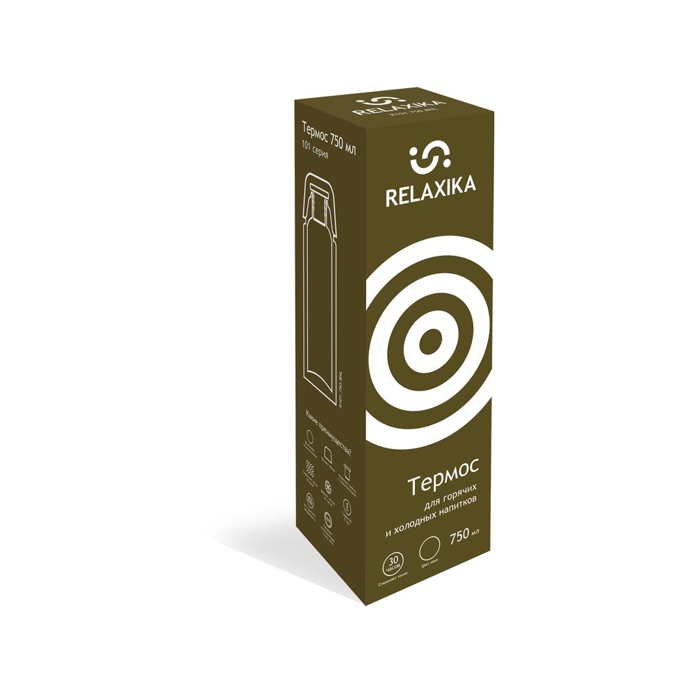 Классический термос Relaxika с высокими показателями удержания температуры напитка для походов, путешествий, спорта и ежедневного использования. Прочные двойные стенки из высококачественной нержавеющей стали 18/8 с вакуумной изоляцией гарантируют, что ваш напиток останется холодным в течение 36 часов и горячим до 30 часов. Этот материал не только прочен, но и гигиеничен, не выделяет никаких вредных для здоровья веществ. Ваши напитки сохраняет естественный вкус и не приобретут посторонний запах. Напиток остается холодным до 36 часов и горячим до 30 часов.