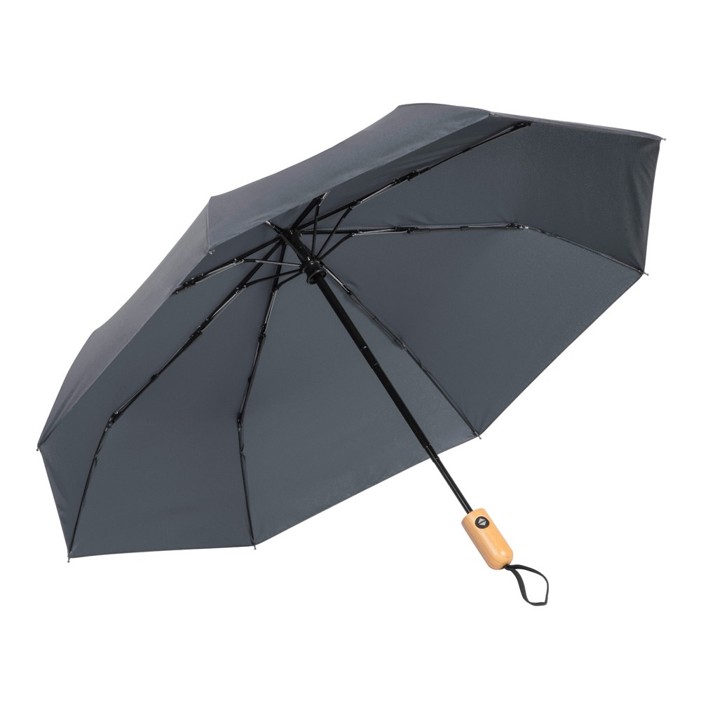 Зонт-автомат с куполом из переработанного пластика - незаменим на случай дождя и сможет выдержать порывы ветра, так как снабжен функцией windproof. На удобной ручке из натурального бамбука есть кнопка открытия и закрытия зонта. Шнурок на ручке предусмотрен для дополнительного удобства - за него можно вешать зонт при хранении и сушке.