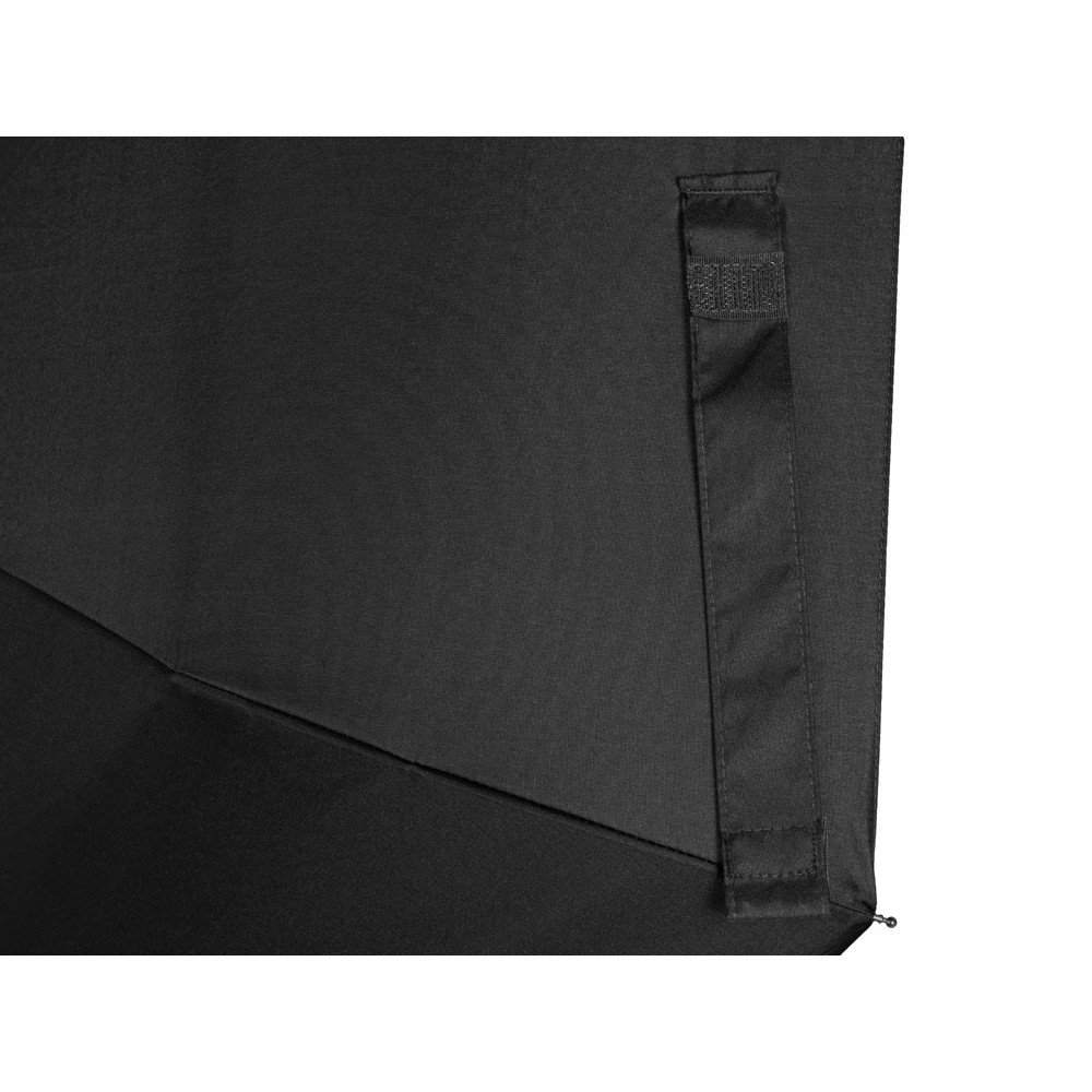 Купол зонта выполнен из переработанного пластика. Гибкие спицы из стекловолокна делают зонт стойким к порывам ветра. Удобная ручка софт тач. Фиксирующая купол застежка на липучке шириной 3 см - дополнительная опция для нанесения вашего логотипа.