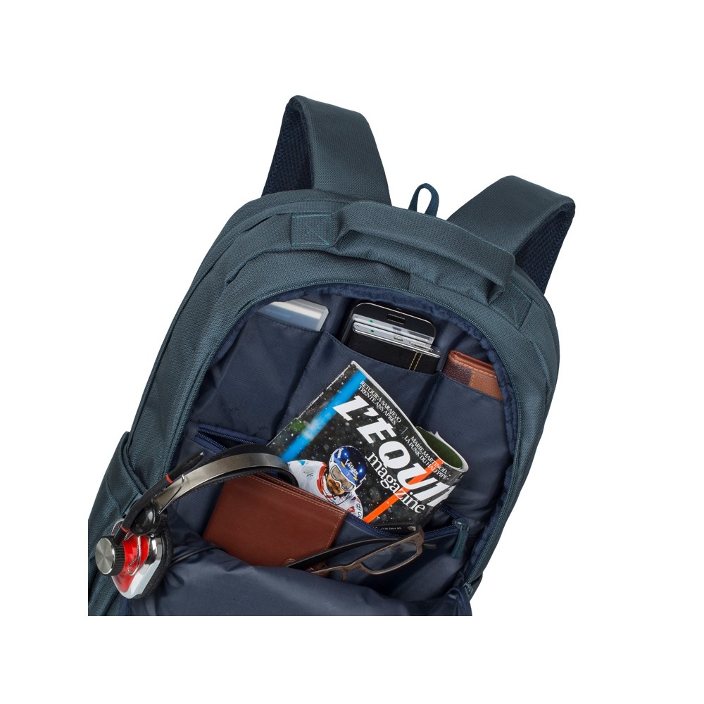 • Основное отделение для ноутбука с вертикальной загрузкой, имеет мягкие стенки и ремень для надежной фиксации ноутбука до 17".