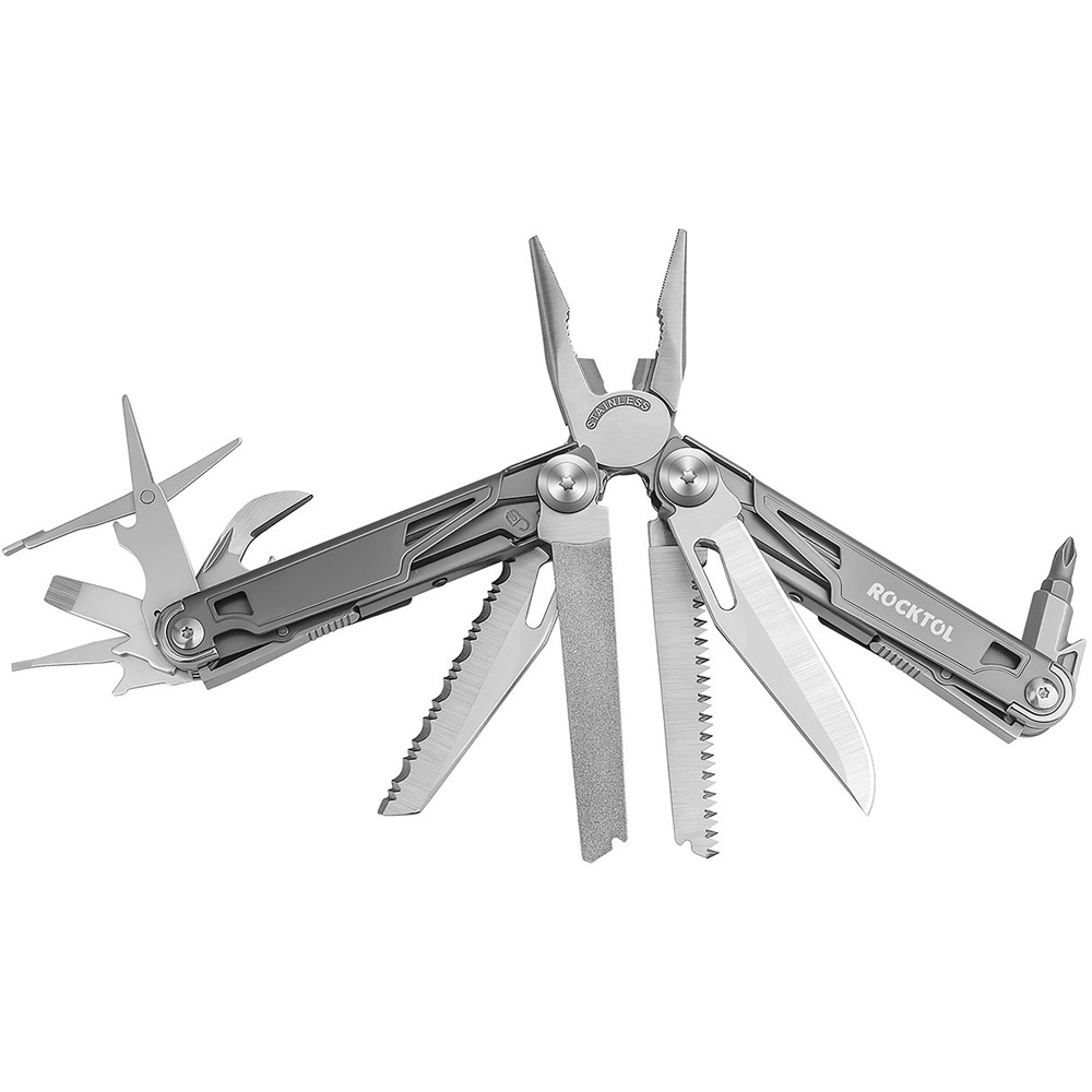 Многофункциональный инструмент Rocktol 19 в 1 с рукояткой из титана и сверхострым ножом из нержавеющей стали 7Cr17 твердостью до HRC 58. Они идеально подходят для тяжелых работ и приключений на свежем воздухе. Каждый инструмент оснащен предохранительным механизмом блокировки для дополнительной безопасности, а прочная конструкция из нержавеющей стали гарантирует его долговечность. Кроме того, компактная и легкая конструкция, а также прочный нейлоновый чехол позволяют легко носить его с собой, куда бы вы ни отправились. Не соглашайтесь ни на что, кроме надежности - выбирайте этот первоклассный мультитул для повседневных задач или для следующего приключения на свежем воздухе!