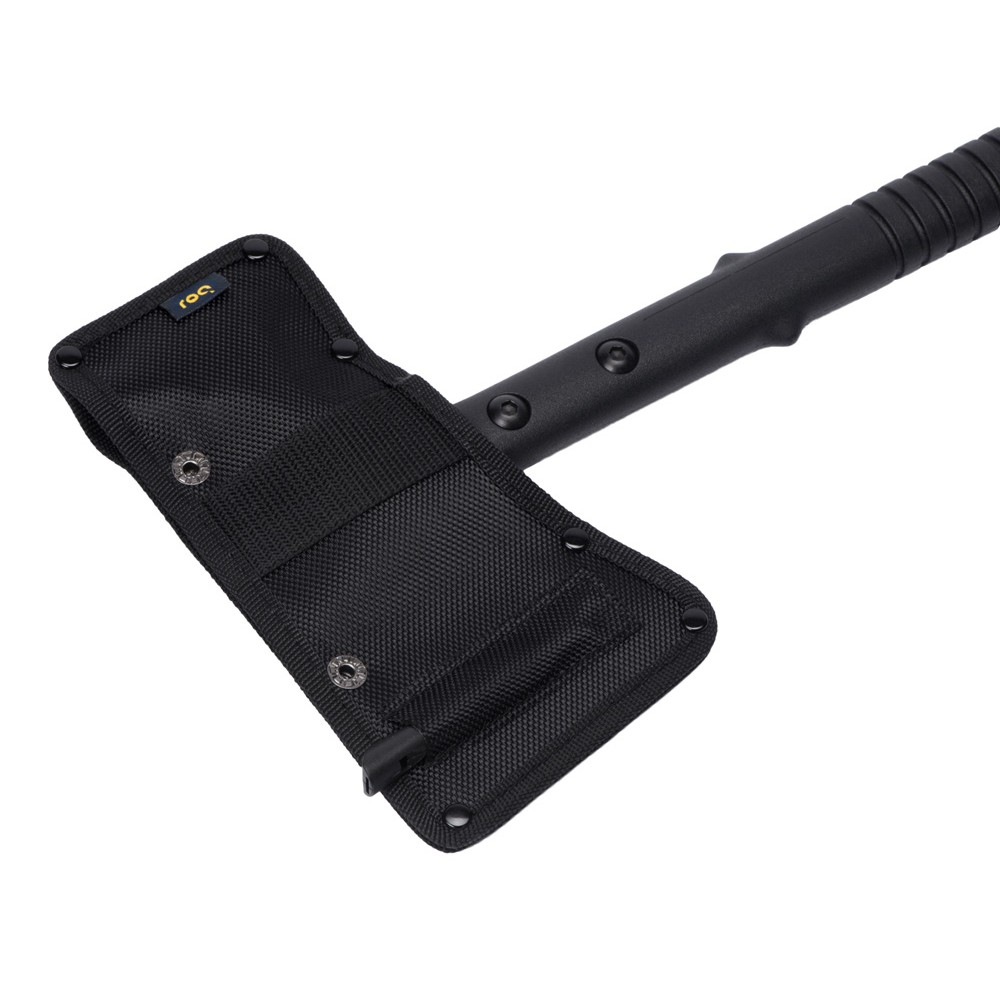 Топор 4-в-1 «Lumber» бренда roq выполнен из нержавеющей стали 420 марки. Товар поставляется в нейлоновом чехле. В чехле есть специальный кармашек с огнивом. Чтобы высечь искры для разжигания костра, возьмите огниво за рукоять в одну руку и проведите лезвием по стержню огнива под углом в 90 градусов в направлении от себя. В целях безопасности не высекайте искры в помещении или около легко воспламеняемых материалов. Поставляется с чехлом в картонной коробке.