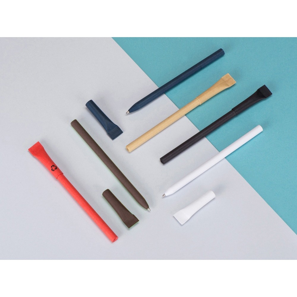 Ручка с корпусом из переработанной бумаги. Оригинальный дизайн, приятная на ощупь поверхность. Переработанная бумага позволяет легко делать нанесение как на теле ручки, так и на колпачке.