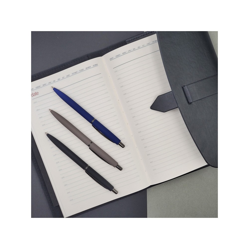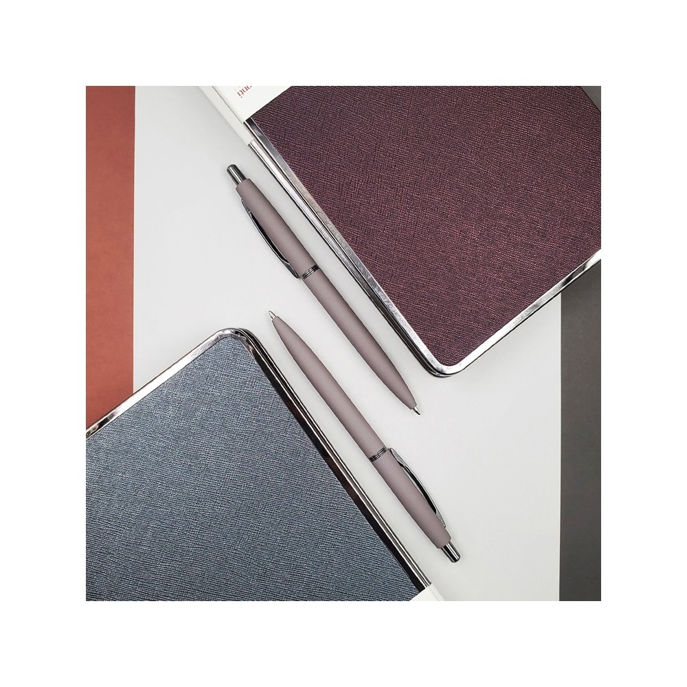 В ручке нет ничего лишнего, но она привлекает к себе внимание: изящна благодаря плавным линиям, эргономичному корпусу и приятна на ощупь, благодаря покрытию soft-touch. Контраст добавляют кольцо и клип из серебристого металла. Отличный бизнес-сувенир!