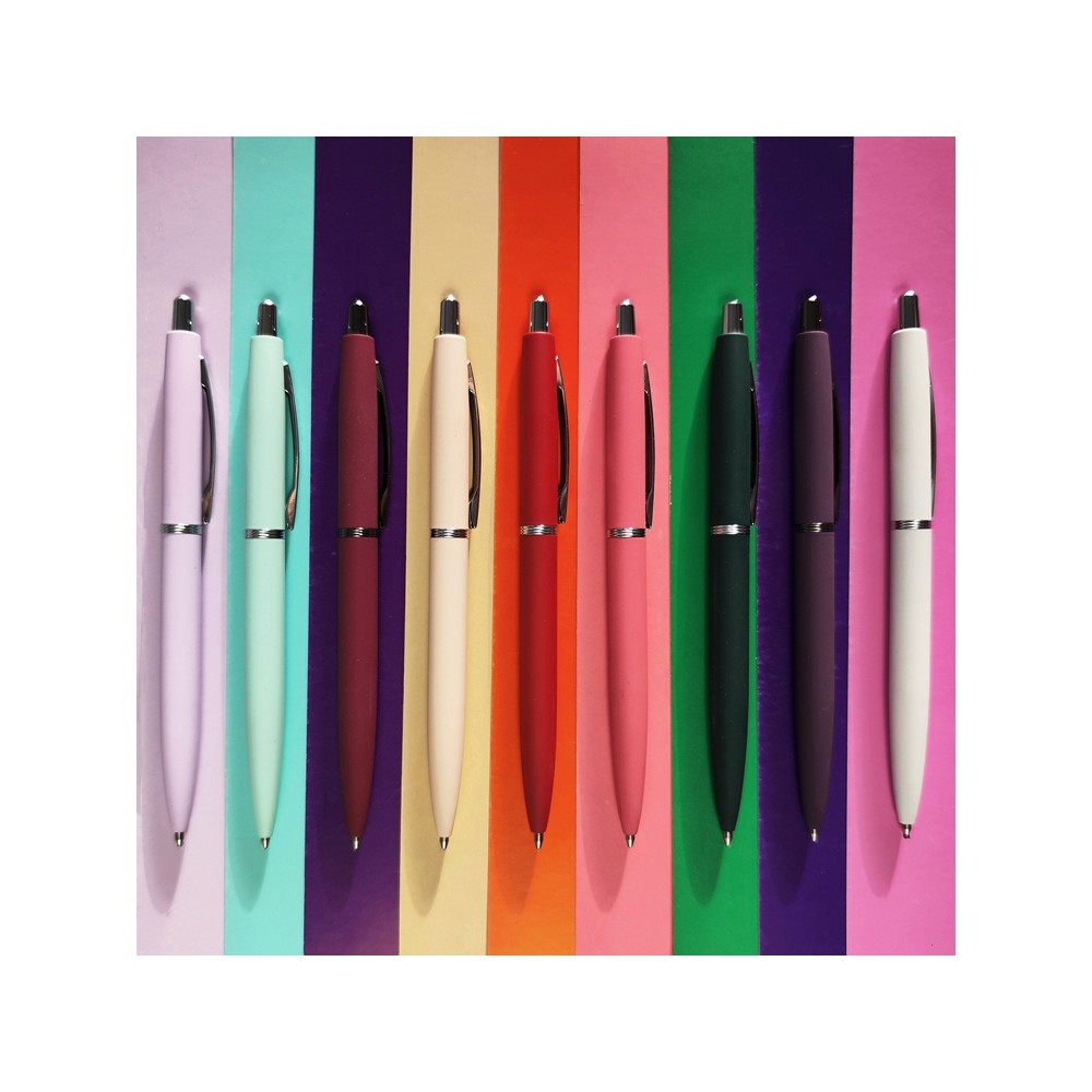 В ручке нет ничего лишнего, но она привлекает к себе внимание: изящна благодаря плавным линиям, эргономичному корпусу и приятна на ощупь, благодаря покрытию soft-touch. Контраст добавляют кольцо и клип из серебристого металла. Отличный бизнес-сувенир!