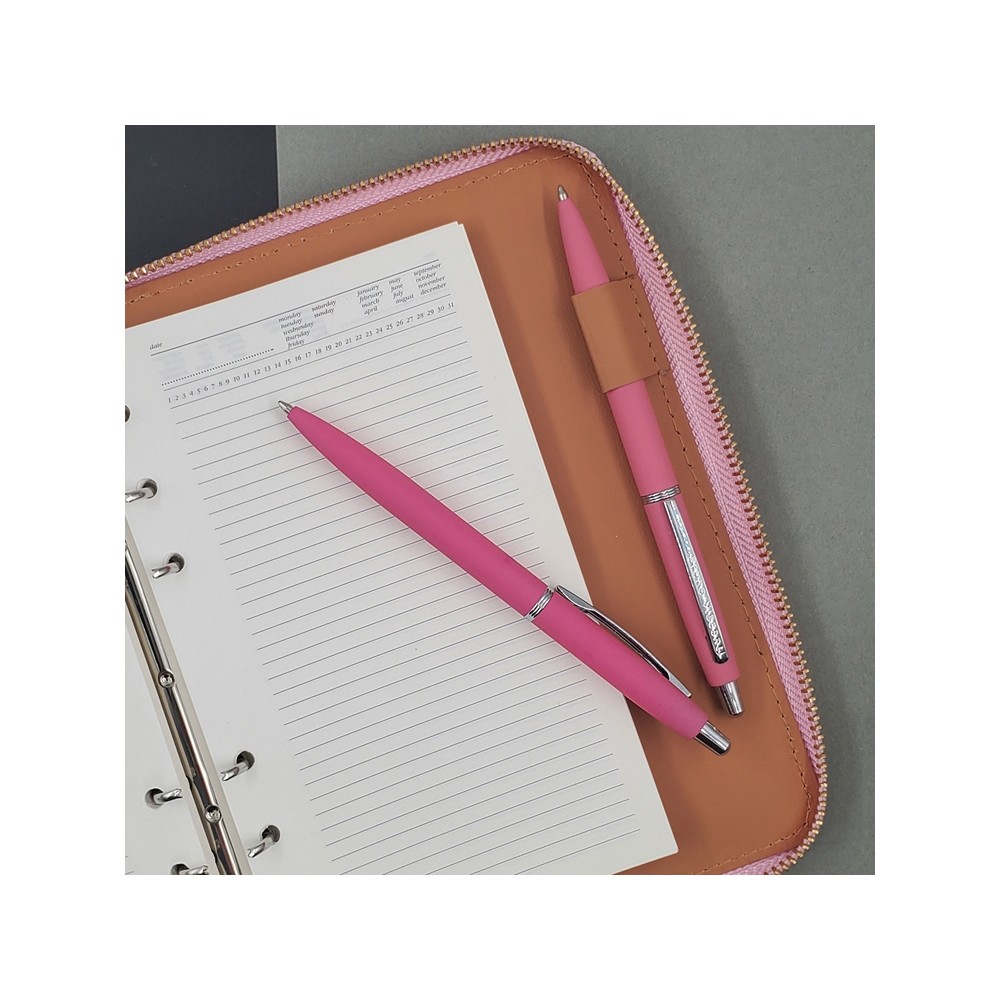 В ручке нет ничего лишнего, но она привлекает к себе внимание: изящна благодаря плавным линиям, эргономичному корпусу и приятна на ощупь, благодаря покрытию soft-touch. Контраст добавляют кольцо и клип из серебристого металла. Отличный бизнес-сувенир!