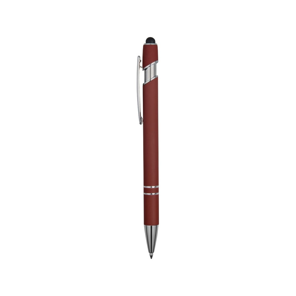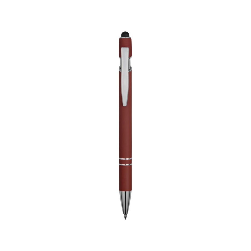 Ручка металлическая soft-touch шариковая со стилусом «Sway», темно-красный/серебристый