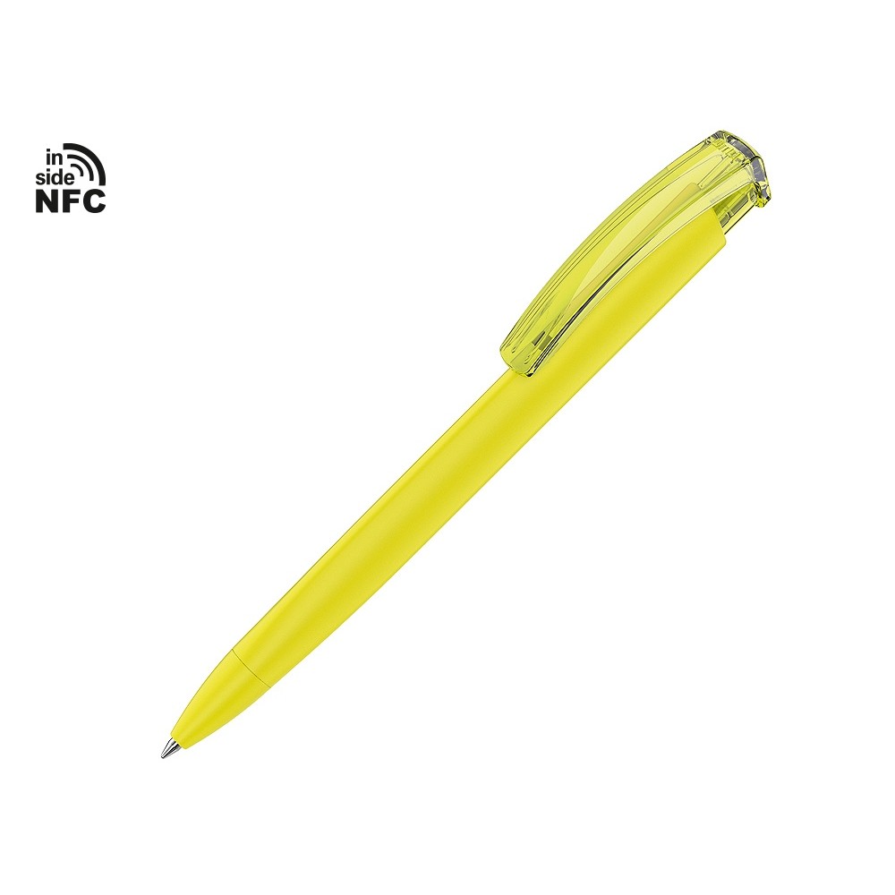 Пластиковая шариковая ручка «Trinity K transparent Gum» soft-touch» с чипом передачи информации NFC обеспечивает быстрый доступ к рекламной информации. Для передачи данных посредством технологии NFC смартфон или планшет, которые поддерживают данную технологию, необходимо поднести к запрограммированной на ручке метке NFC (метка расположена под логотипом NFC). После этого на смартфоне или планшете откроется запрограммированная ссылка на сайт, ролик или начнется загрузка другой информации (заранее загруженной в сеть интернет). Таким образом метка работает как код, при чтении которого смартфон или планшет открывает определенную программу, активирует функцию или ссылку. Можно запрограммировать на метке NFC адрес сайта, каталог и другие рекламные материалы и раздавать вместо визиток. Метка NFC активирует одно действие на смартфоне или планшете.