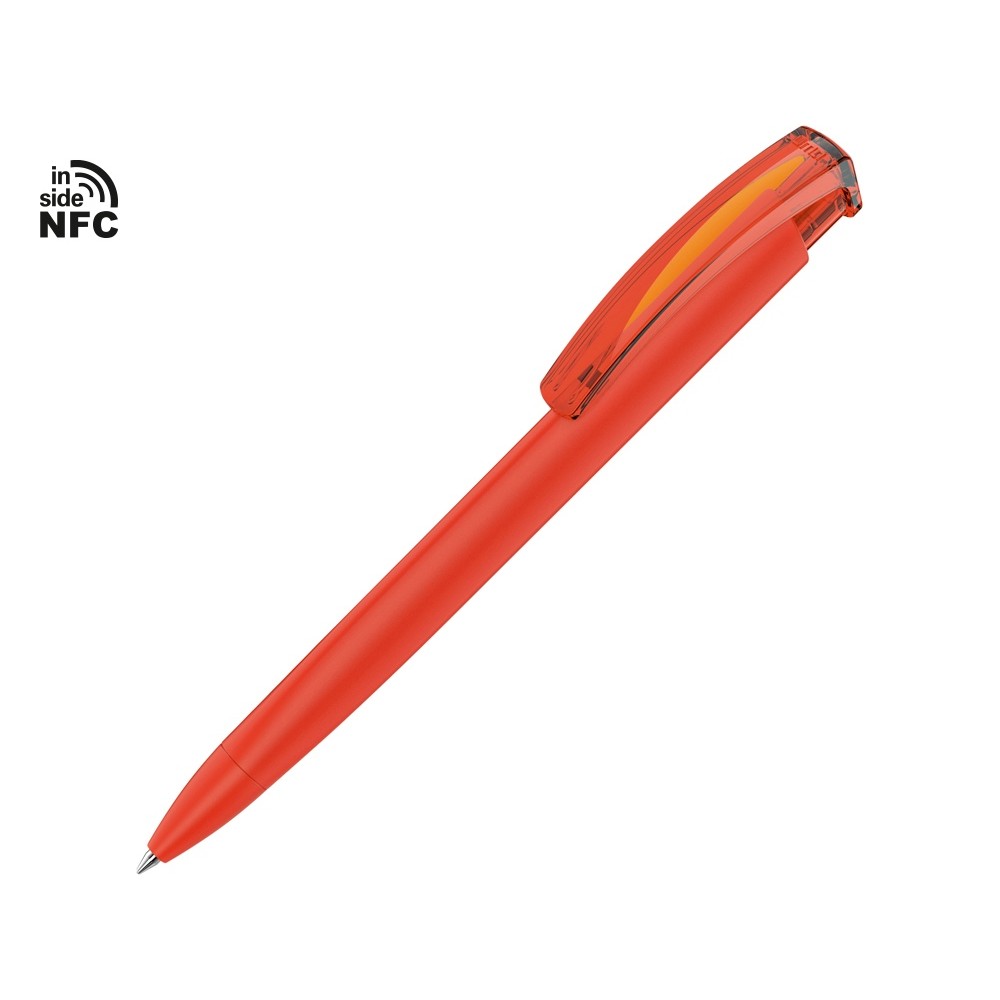 Пластиковая шариковая ручка «Trinity K transparent Gum» soft-touch» с чипом передачи информации NFC обеспечивает быстрый доступ к рекламной информации. Для передачи данных посредством технологии NFC смартфон или планшет, которые поддерживают данную технологию, необходимо поднести к запрограммированной на ручке метке NFC (метка расположена под логотипом NFC). После этого на смартфоне или планшете откроется запрограммированная ссылка на сайт, ролик или начнется загрузка другой информации (заранее загруженной в сеть интернет). Таким образом метка работает как код, при чтении которого смартфон или планшет открывает определенную программу, активирует функцию или ссылку. Можно запрограммировать на метке NFC адрес сайта, каталог и другие рекламные материалы и раздавать вместо визиток. Метка NFC активирует одно действие на смартфоне или планшете.