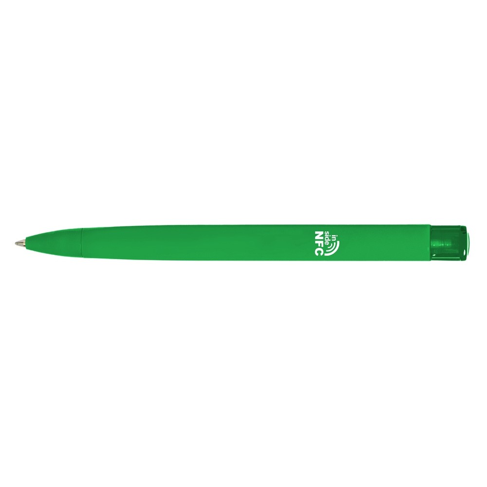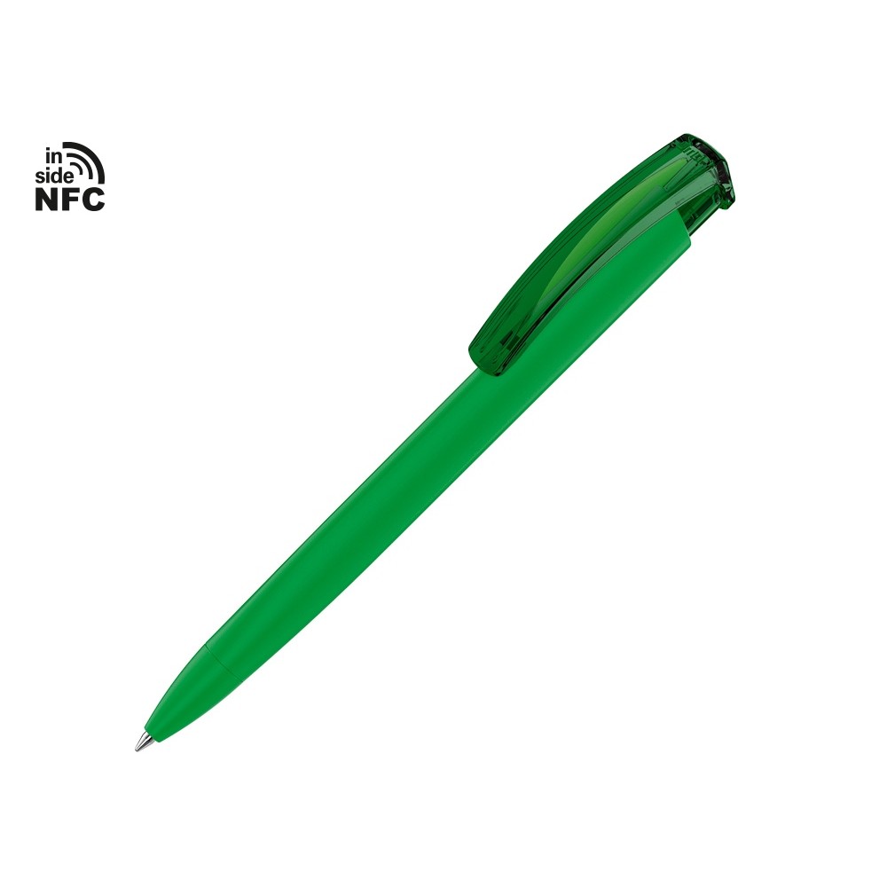 Пластиковая шариковая ручка «Trinity K transparent Gum» soft-touch» с чипом передачи информации NFC обеспечивает быстрый доступ к рекламной информации. Для передачи данных посредством технологии NFC смартфон или планшет, которые поддерживают данную технологию, необходимо поднести к запрограммированной на ручке метке NFC (метка расположена под логотипом NFC). После этого на смартфоне или планшете откроется запрограммированная ссылка на сайт, ролик или начнется загрузка другой информации (заранее загруженной в сеть интернет). Таким образом метка работает как код, при чтении которого смартфон или планшет открывает определенную программу, активирует функцию или ссылку. Можно запрограммировать на метке NFC адрес сайта, каталог и другие рекламные материалы и раздавать вместо визиток. Метка NFC активирует одно действие на смартфоне или планшете.