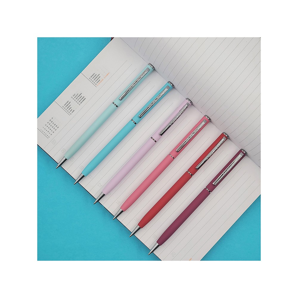 Автоматическая металлическая ручка "Bruno Visconti" серии "Palermo" однотонного цвета порадует любителей всего изящного и утонченного. Покрытие корпуса Soft Touch гарантирует дополнительный комфорт в работе с ней. Стержень легко выдвигается благодаря поворотному механизму. Синие пигментные чернила Dokumental (Германия) и пишущий узел Premec (Швейцария) обеспечивают качественное и мягкое письмо.