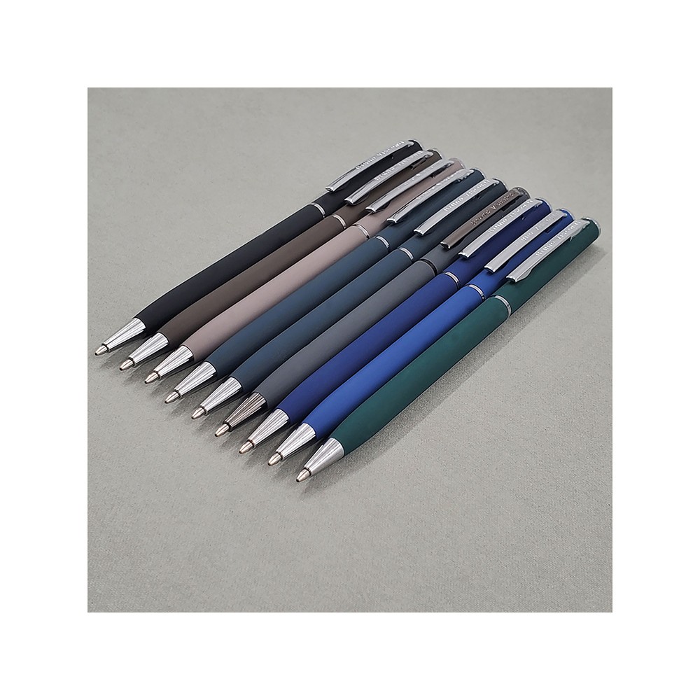 Автоматическая металлическая ручка "Bruno Visconti" серии "Palermo" однотонного цвета порадует любителей всего изящного и утонченного. Покрытие корпуса Soft Touch гарантирует дополнительный комфорт в работе с ней. Стержень легко выдвигается благодаря поворотному механизму. Синие пигментные чернила Dokumental (Германия) и пишущий узел Premec (Швейцария) обеспечивают качественное и мягкое письмо.