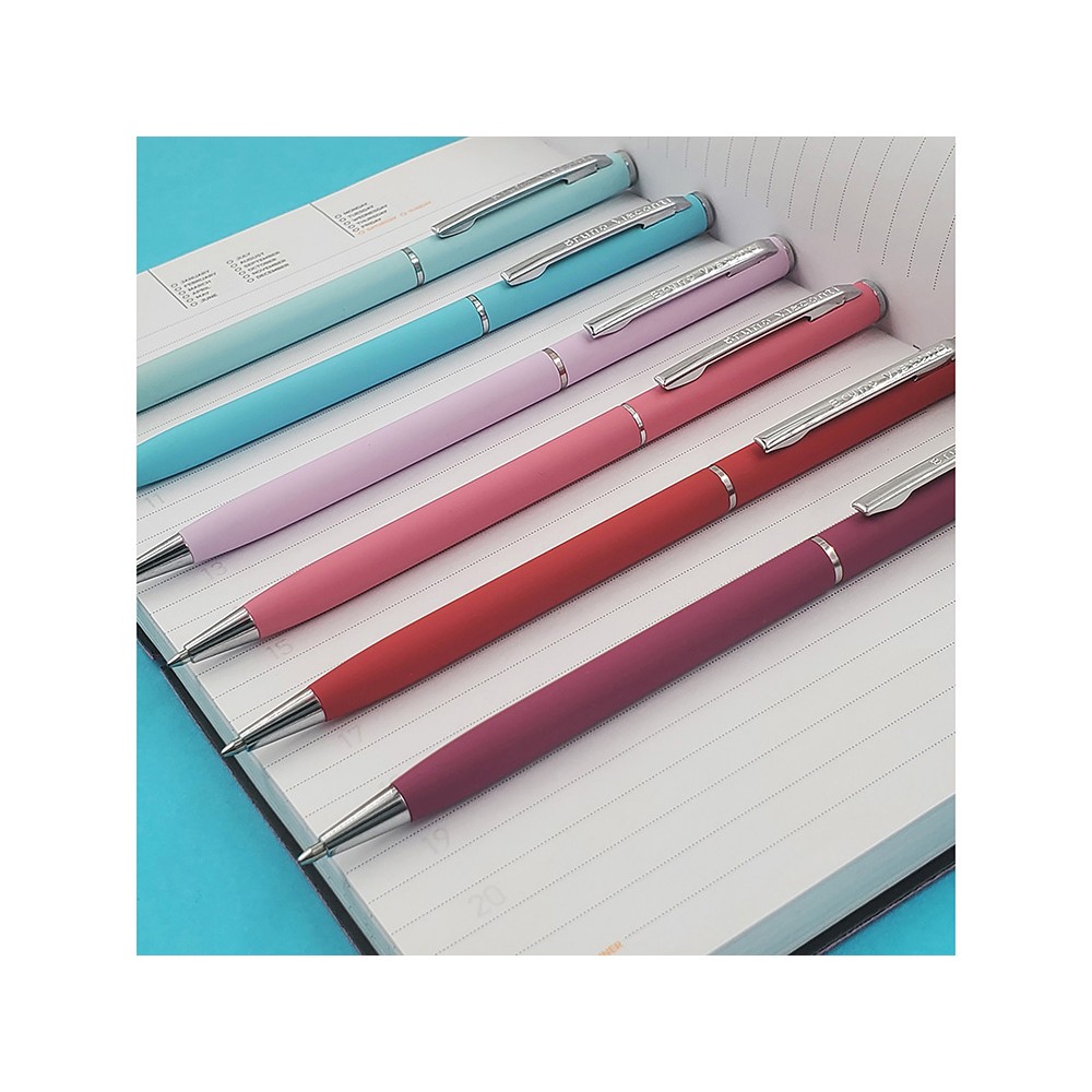 Автоматическая металлическая ручка "Bruno Visconti" серии "Palermo" однотонного цвета порадует любителей всего изящного и утонченного. Покрытие корпуса Soft Touch гарантирует дополнительный комфорт в работе с ней. Стержень легко выдвигается благодаря поворотному механизму. Синие пигментные чернила Dokumental (Германия) и пишущий узел Premec (Швейцария) обеспечивают качественное и мягкое письмо.