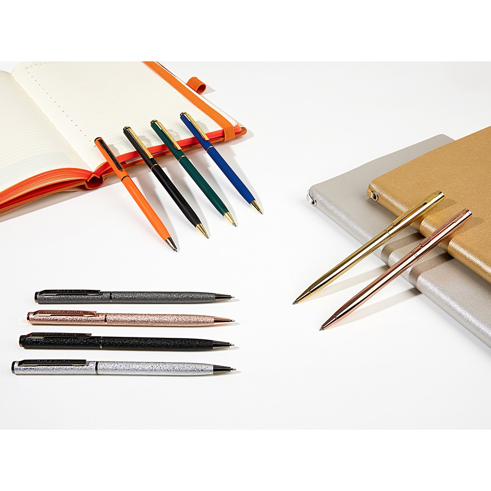 Автоматическая металлическая ручка "Bruno Visconti" серии "Palermo" однотонного цвета порадует любителей всего изящного и утонченного. Покрытие корпуса Soft Touch гарантирует дополнительный комфорт в работе с ней. Стержень легко выдвигается благодаря поворотному механизму. Синие пигментные чернила Dokumental (Германия) и пишущий узел Premec (Швейцария) обеспечивают качественное и мягкое письмо.