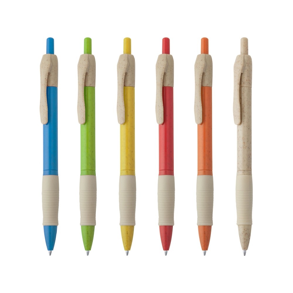 Шариковая ручка из пшеничного волокна и АБС-пластика и удобным захватом. Синие чернила.