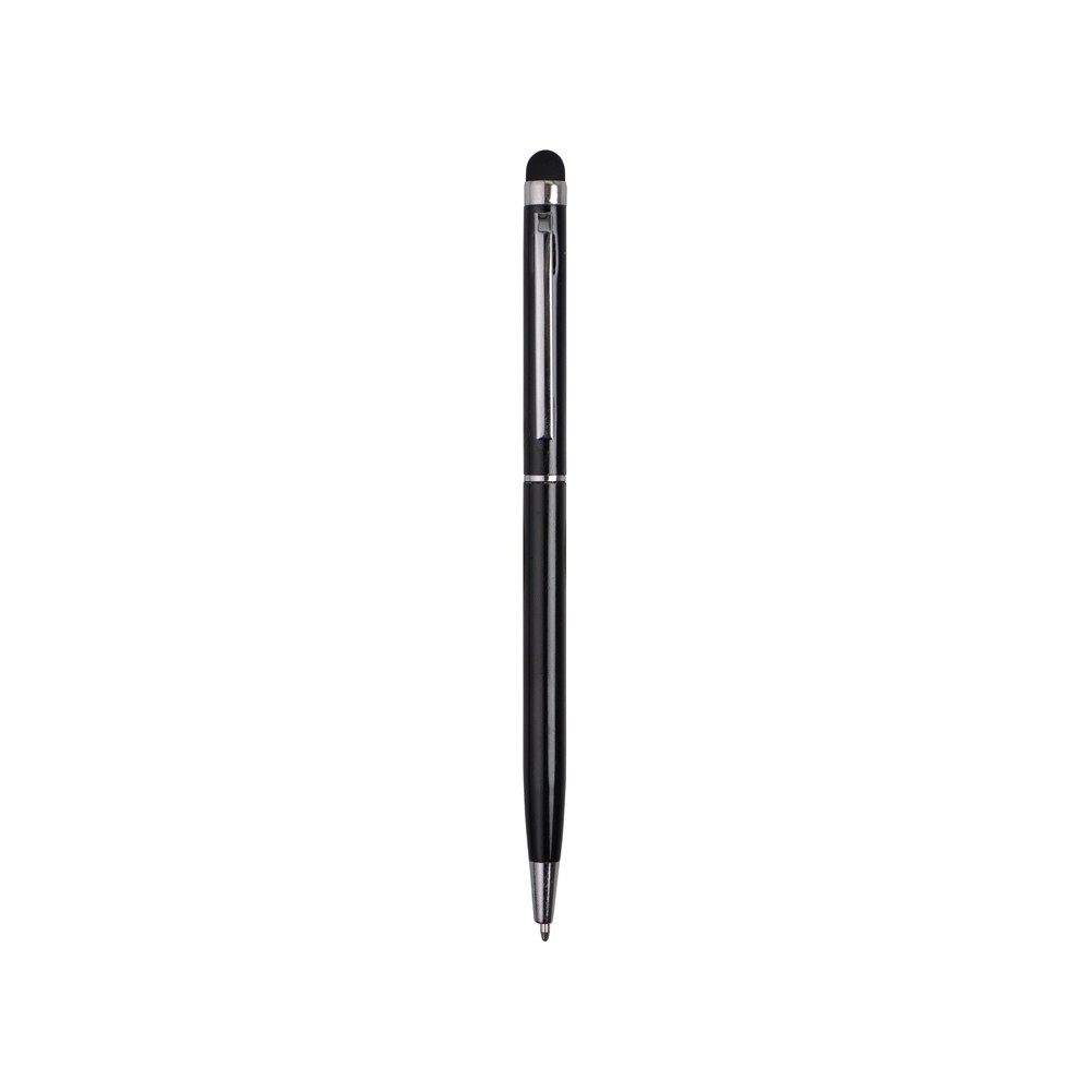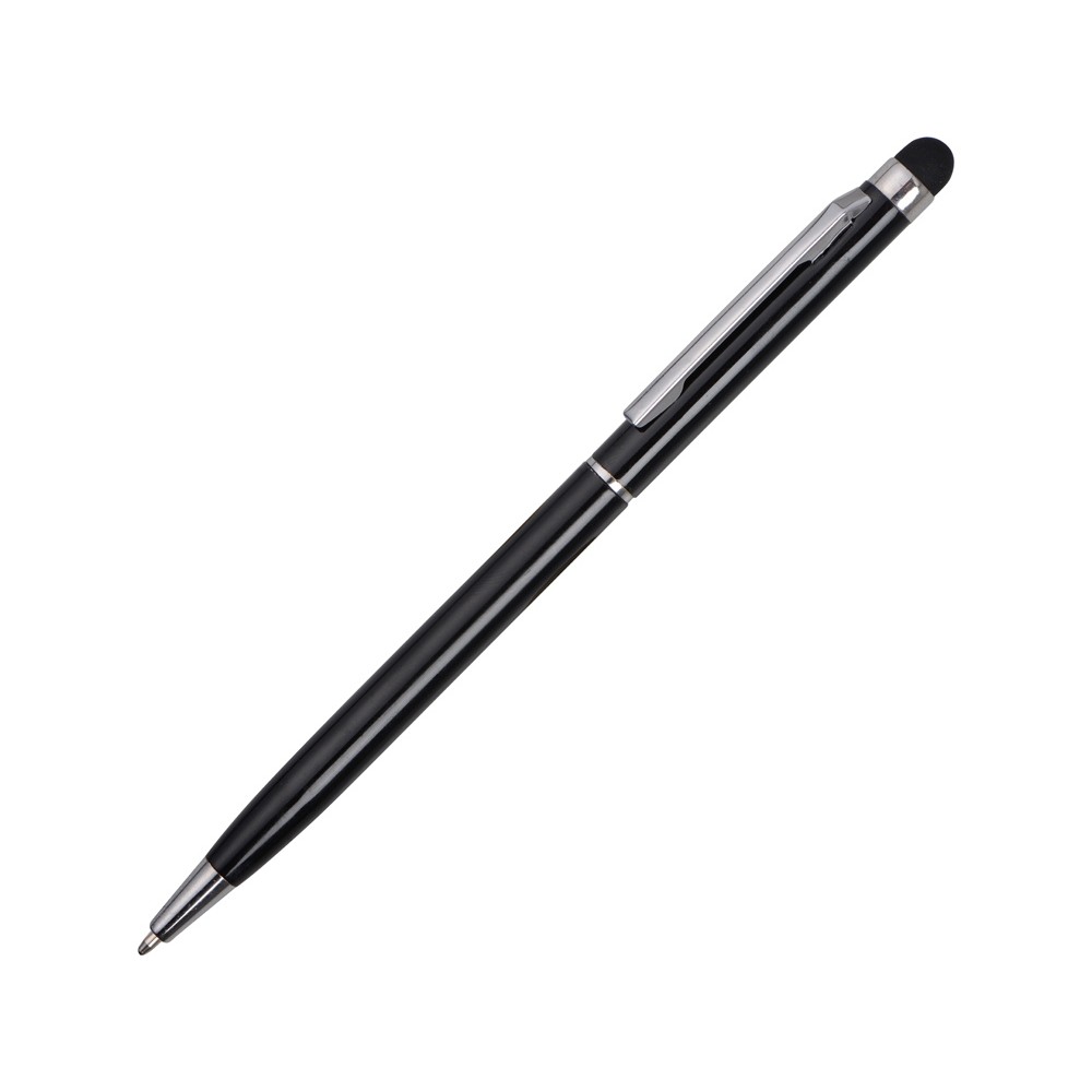 Тонкая металлическая шариковая ручка с поворотным механизмом и стилусом. Функциональный и стильный аксессуар станет отличным подарком.