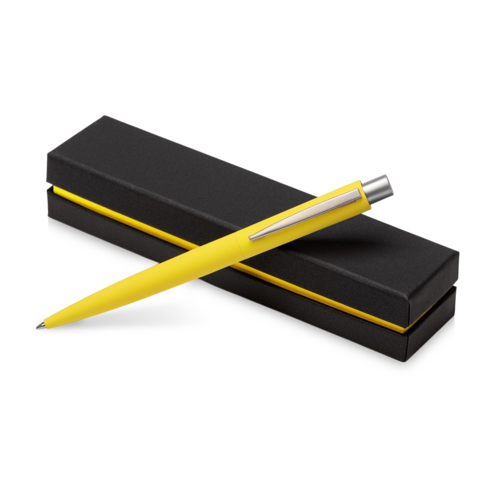 Металлическая шариковая ручка с матовым цветным прорезиненным корпусом. Металлический клип и кнопка в серебристом матовом цвете. Поставляется в красивом черном футляре, внутренний цвет которого идеально сочетается с цветом самой ручки.