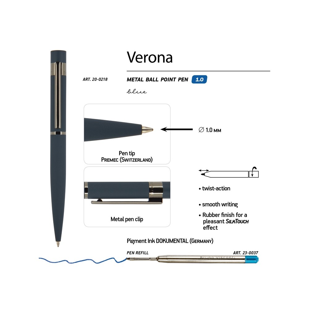Технические характеристики Ручка "Verona" шариковая автоматическая, синий металлический корпус 1.0 мм, синяя