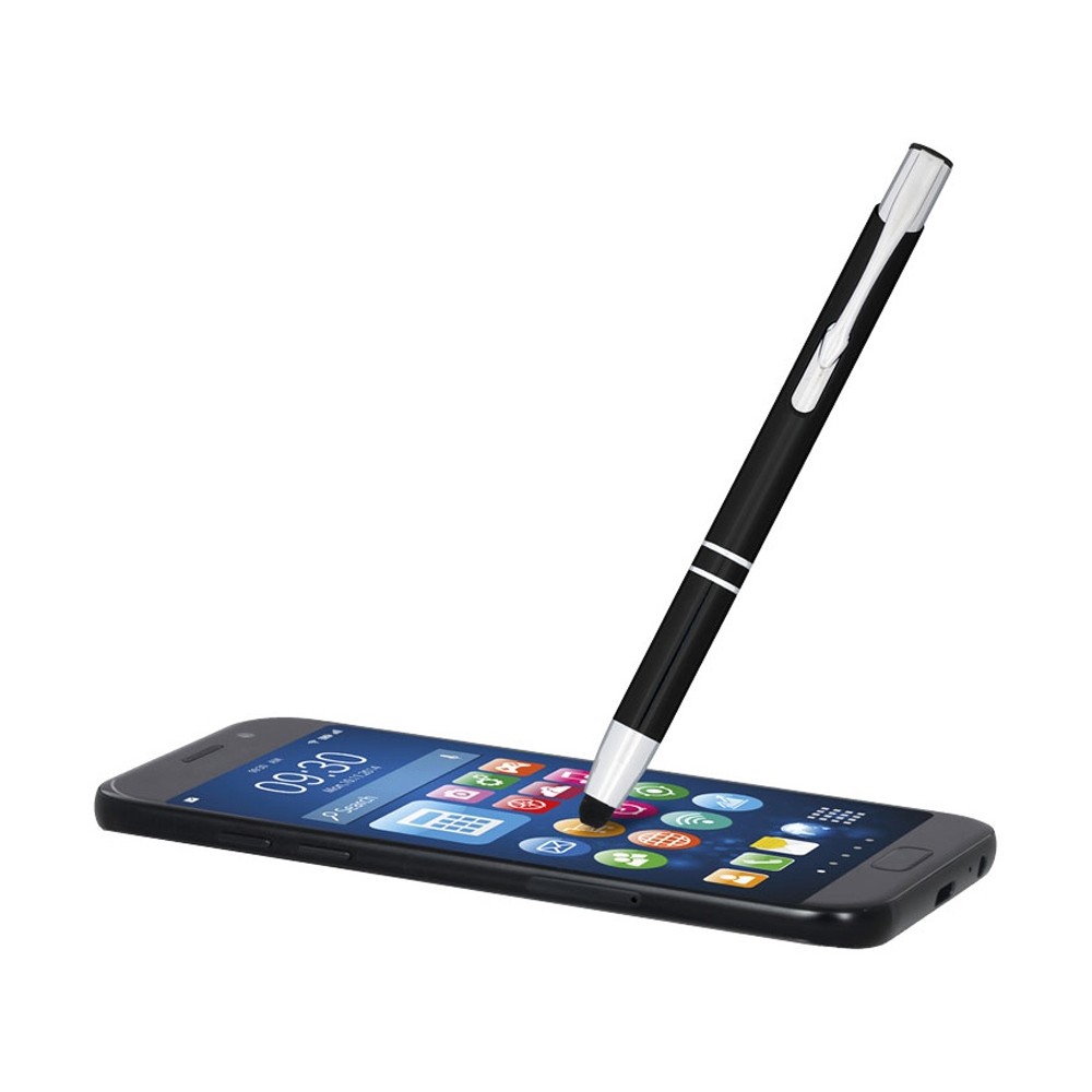 • Шариковая кнопочная ручка-стилус Moneta из анодированного алюминия, черный