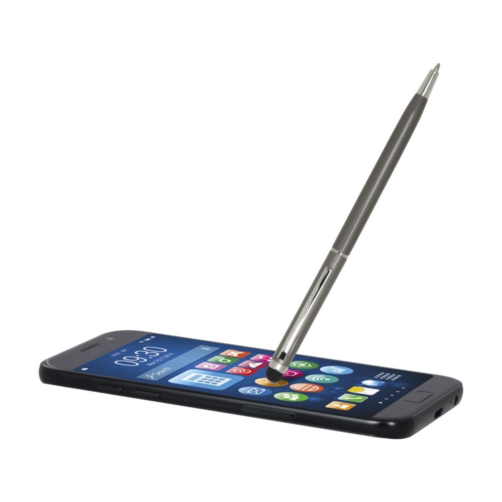 Этот универсальный комплект из шариковой ручки и стилуса изготовлен из прочного алюминия. Ручка обеспечивает плавное письмо, а встроенный стилус идеально подходит для точной навигации на сенсорных экранах. Цвет чернил: синий. Длина непрерывной линии: 1000 метров. Размер пера: 1,0 мм. Алюминий.