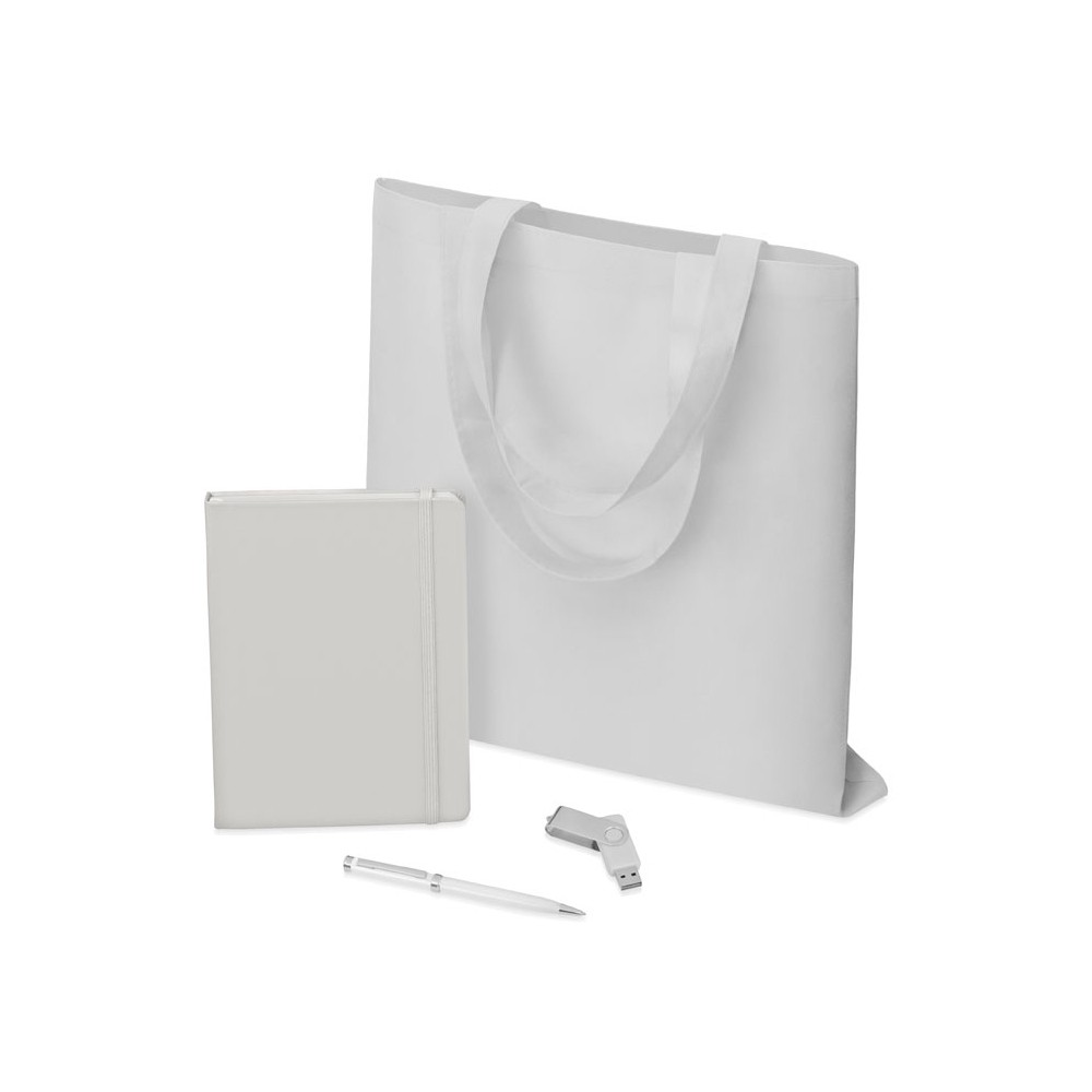 Комплектностьсумка, блокнот А5, ручка металлическая шариковая, USB-флешка на 16 Гб Материал товаранетканый материал 80 г/м2, картон с покрытием ПВХ, металл, пластик с покрытием софт-тач\металл Материалы товаракартон, soft-touch/софт-тач, нетканый материал, металл, пластик