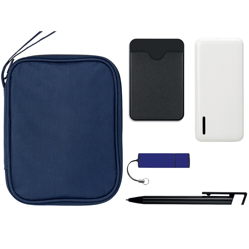 • Подарочный набор с флешкой, повербанком и ручкой, темно-синий