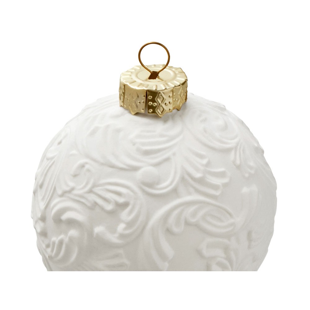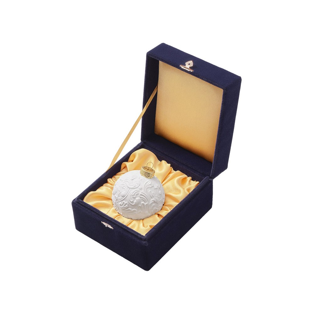 Фарфоровый шар с росписью в технике бисквит. Игрушка ручной работы. Матовая, бархатистая поверхность и пастельные тона создают утонченный образ старинного зимнего праздника. Это воплощение изящества и ностальгии.