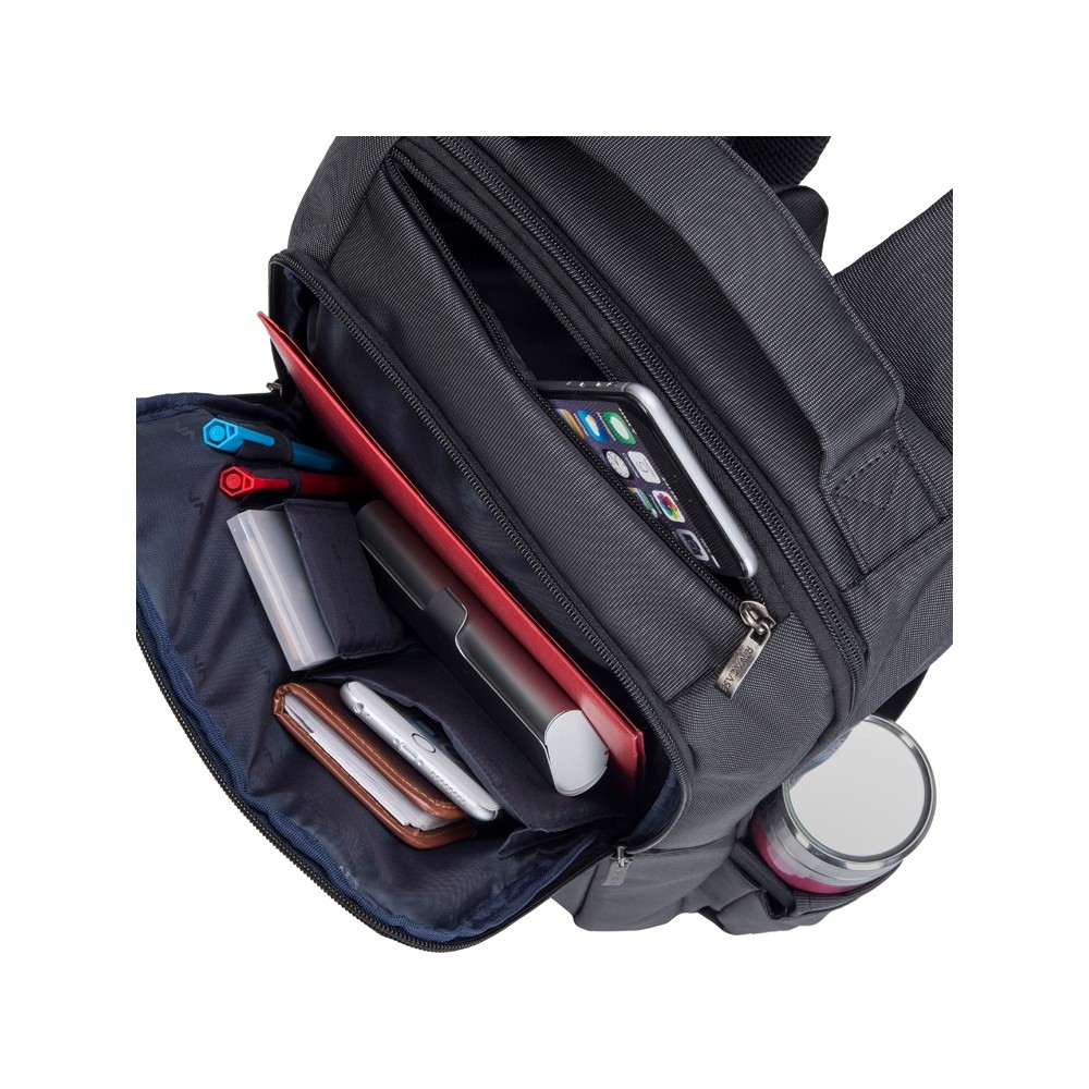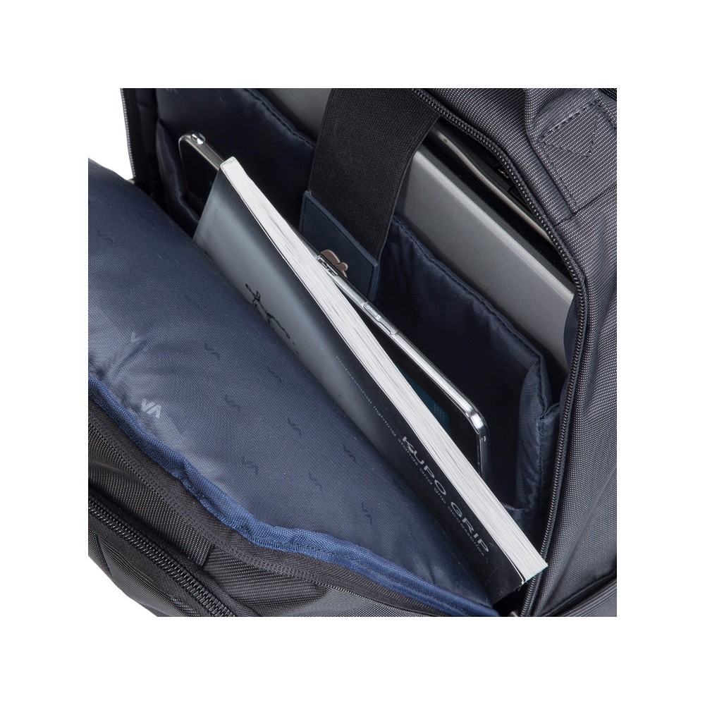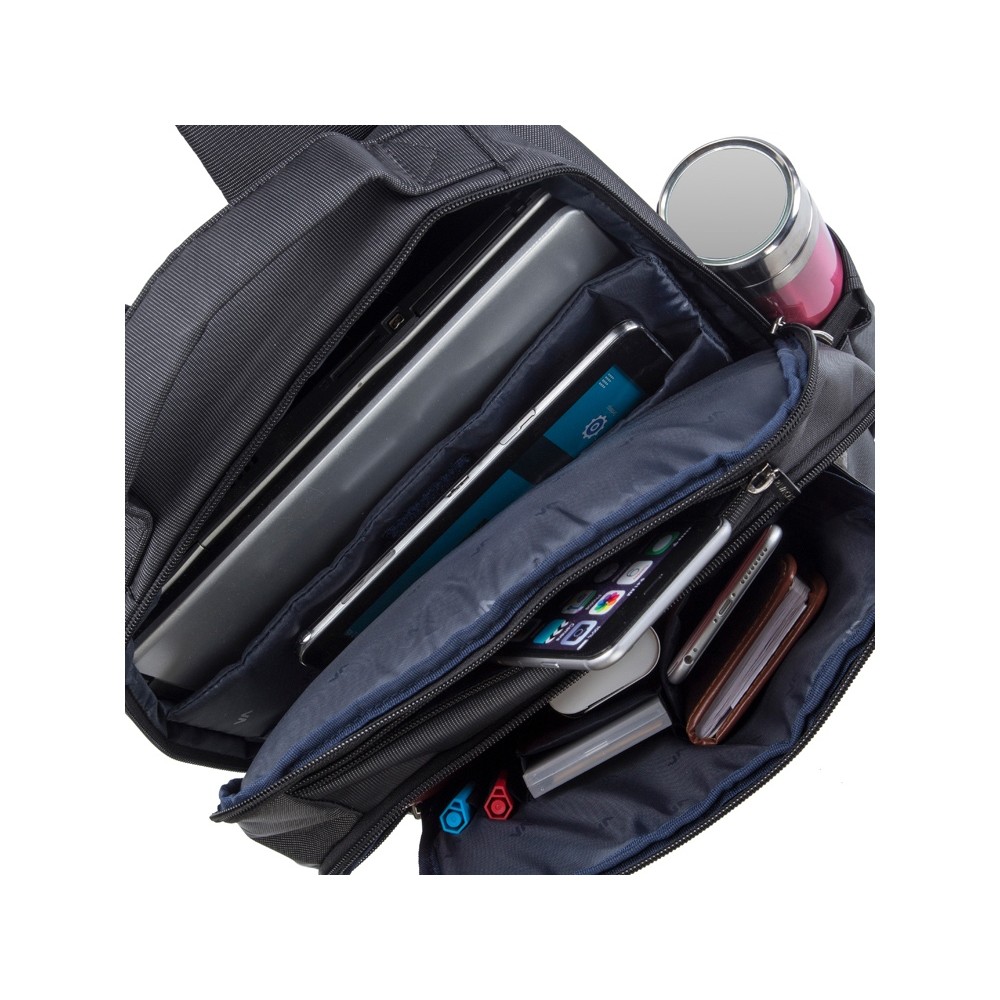 • Основное отделение для ноутбука с вертикальной загрузкой, имеет мягкие стенки и ремень для надежной фиксации ноутбука до 15.6"" и просторную секцию для хранения книг и документов.