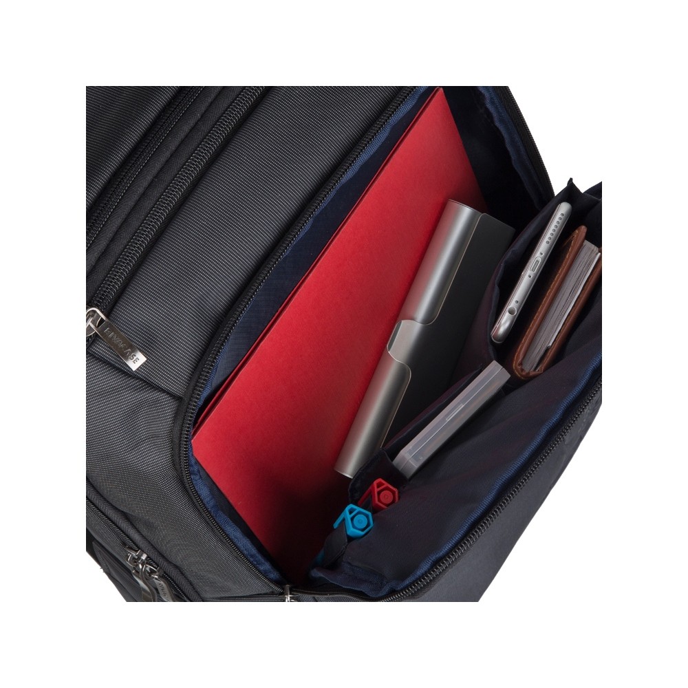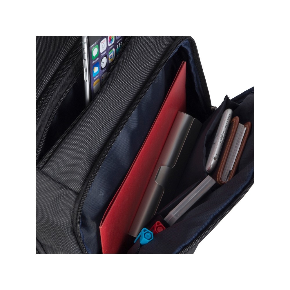 • Передний карман на молнии для хранения аксессуаров, зарядного устройства, также оборудован панелью-органайзером для хранения визитных карт, авторучек, смартфона.