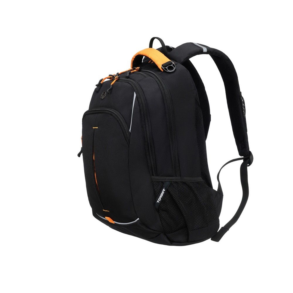 • Рюкзак TORBER РАКЕТА черный/оранжевый, полиэстер/добби, 32x15x46 см, 22 л