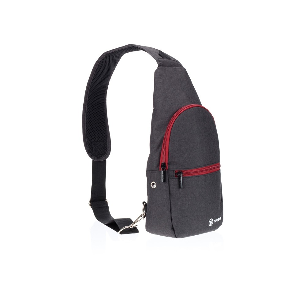 Рюкзак TORBER с одним плечевым ремнем, чёрный/бордовый, полиэстер 300D, 33 х 17 х 6 см