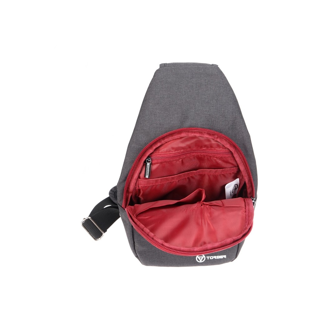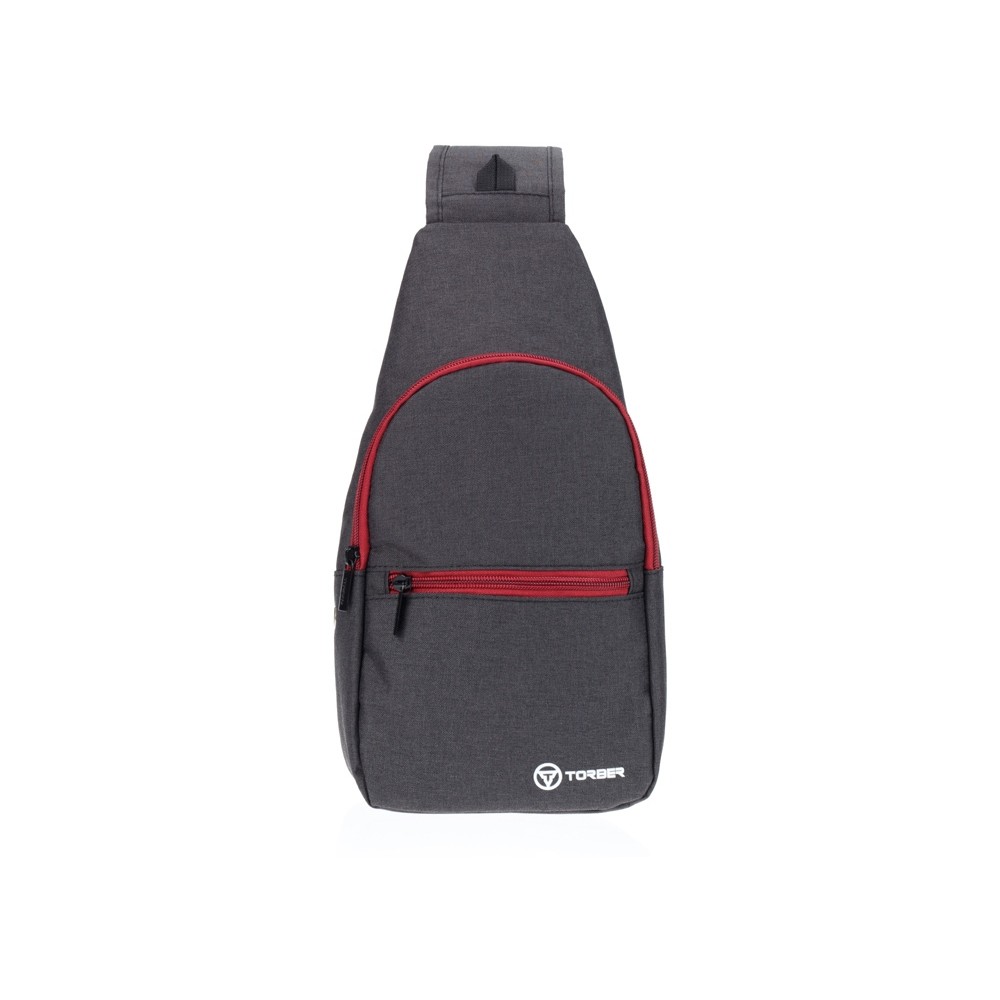 Рюкзак TORBER с одним плечевым ремнем, серый, полиэстер 300D, 33 х 17 х 6 см