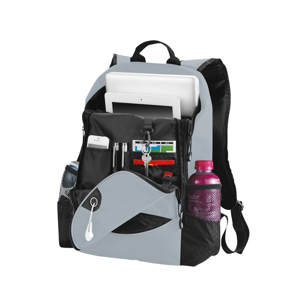 Рюкзак Benton для ноутбука 15 дюймов. Основное отделение на молнии подходит для большинства ноутбуков 15 дюймов и включает отделение с мягкой подкладкой для iPad или планшета. Большой передний карман на молнии с органайзером и держателем для наушников. Два боковых кармана. Усиленная ручка и регулируемые плечевые ремни с мягкими подкладками. Принадлежности не включены. Полиэстер 600D.