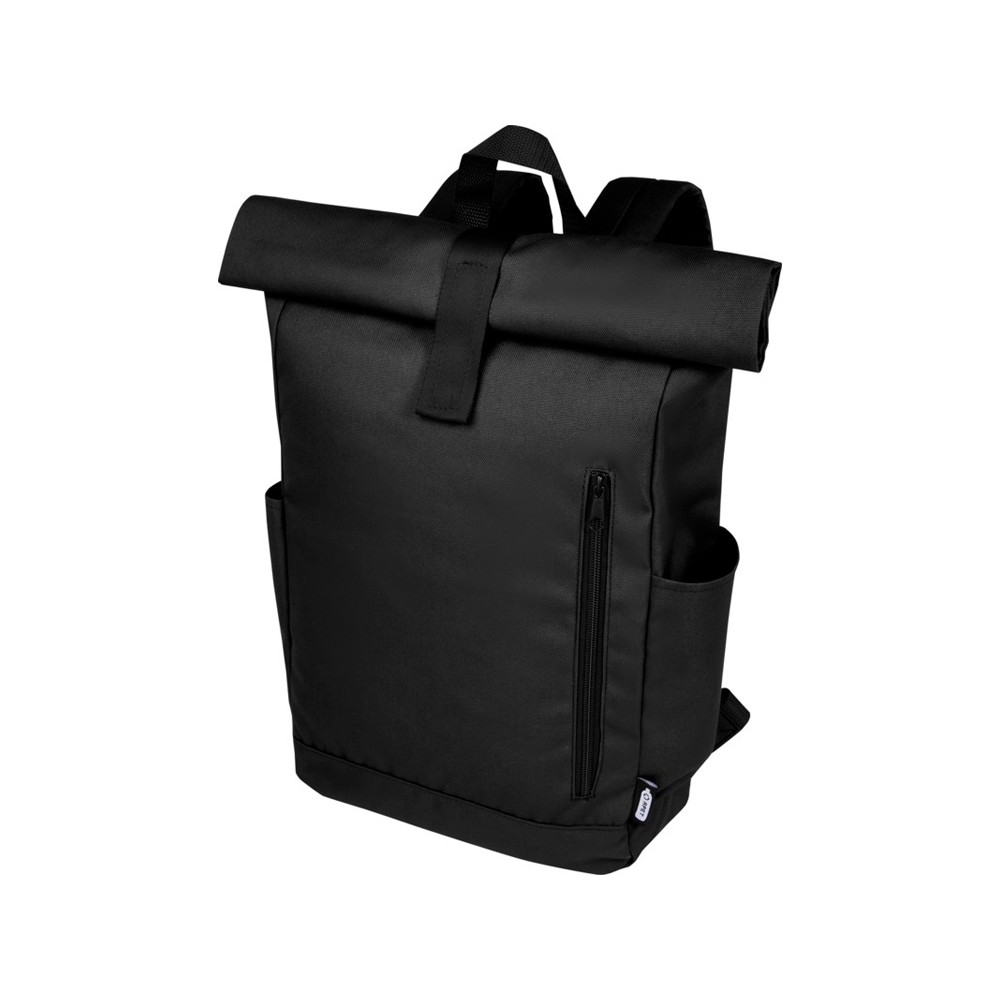 • Рюкзак Byron 15,6" объемом 18 л со скручиваемым верхом, изготовленный из переработанного ПЭТ по стандарту GRS, черный