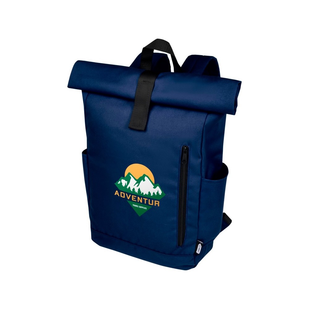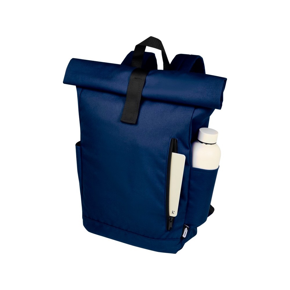 Рюкзак Byron 15,6" объемом 18 л со скручиваемым верхом, изготовленный из переработанного ПЭТ по стандарту GRS, темно-синий