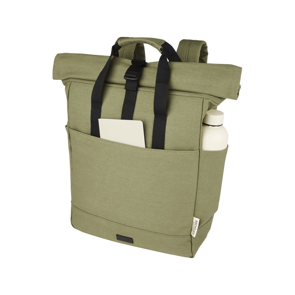 Рюкзак для 15-дюймового ноутбука Joey объемом 15 л из брезента, переработанного по стандарту GRS, со сворачивающимся верхом, оливковый