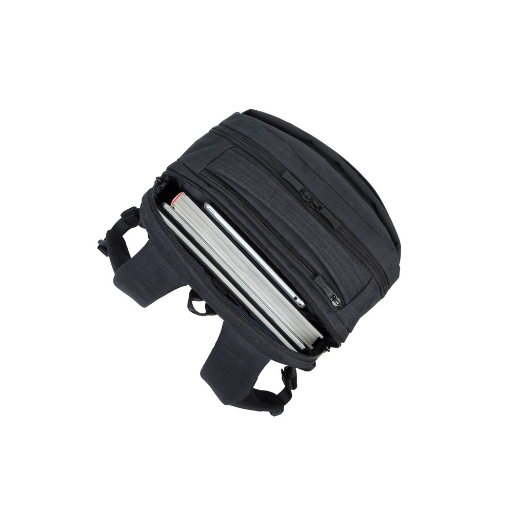 • Основное отделение для ноутбука с вертикальной загрузкой, имеет мягкие стенки, утолщенное дно и дополнительное внутреннее отделение для планшета до 10.1.