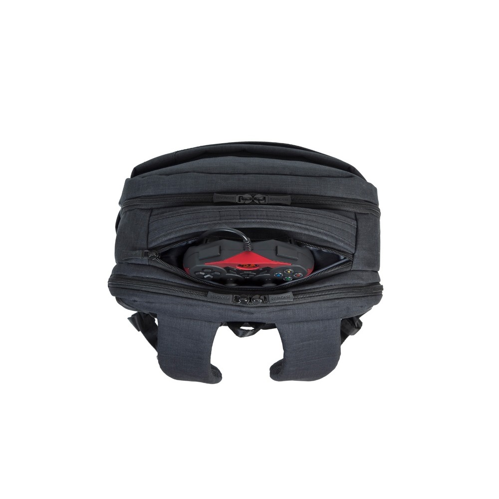 • Просторная секция на молнии для хранения всех необходимых игровых аксессуаров - наушники, мышь, коврик, клавиатура.