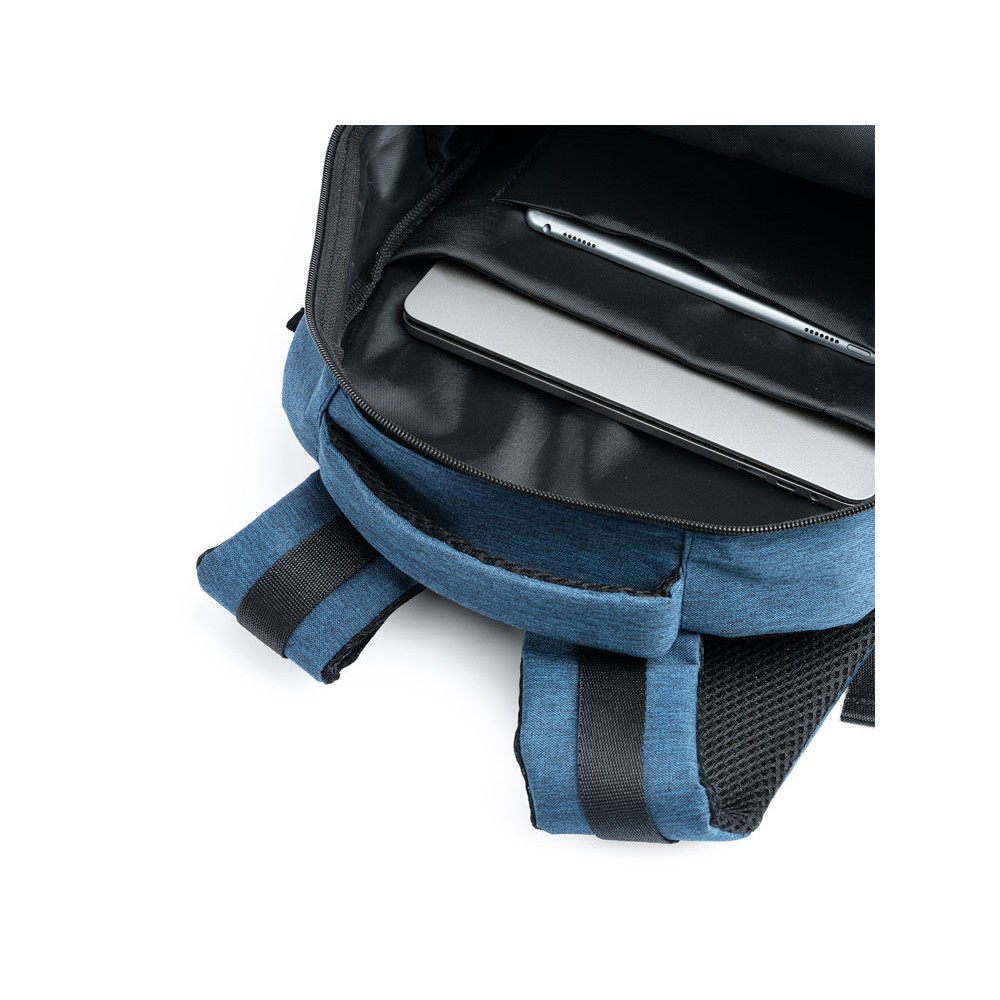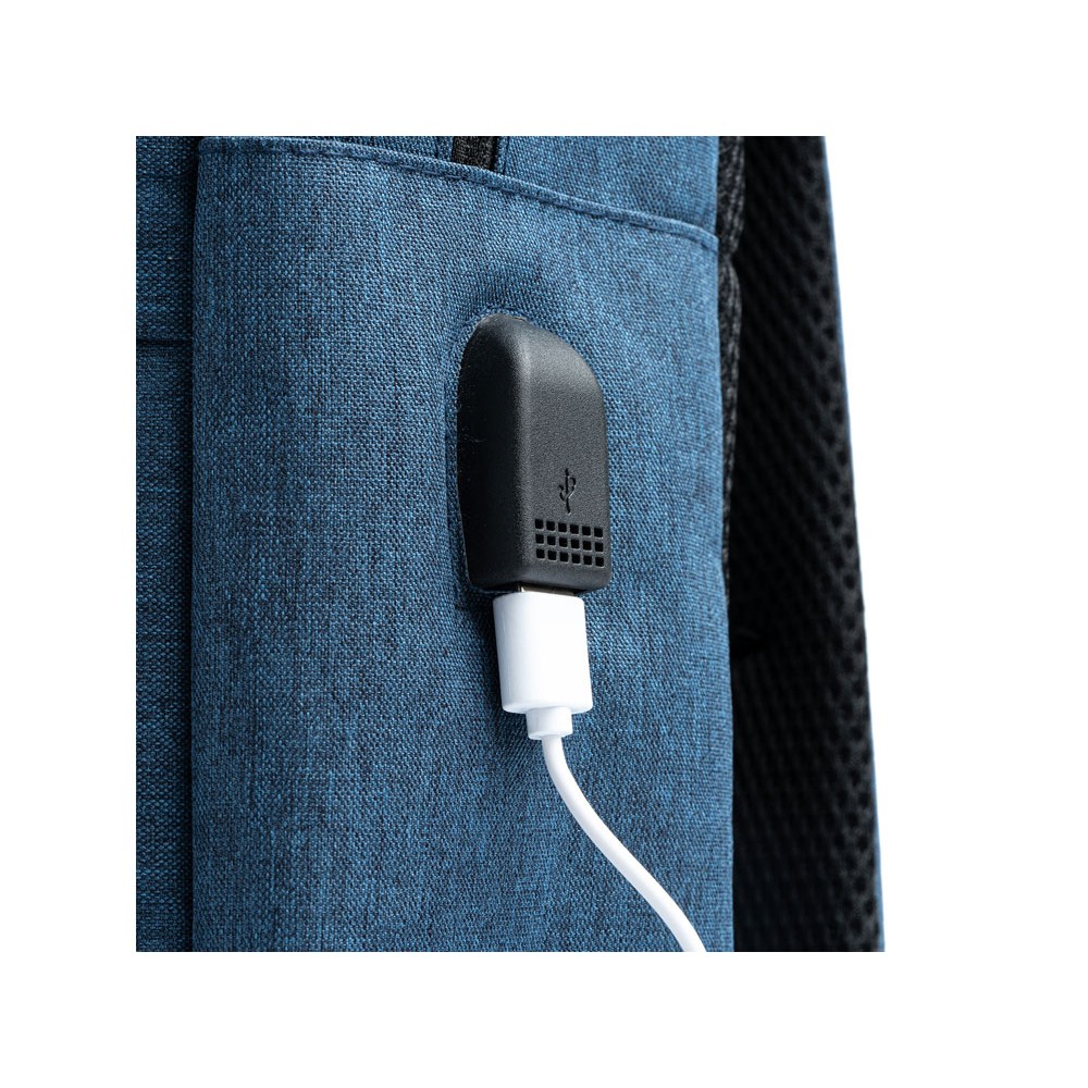 Рюкзак из переработанного полиэстера RPET 600D с эффектным дизайном. Мягкое основное отделение идеально подходит для ноутбука или планшета. Выход USB для подключения повербанка (не входит в комплект). Передний и боковой карман. Мягкие лямки и спинка.