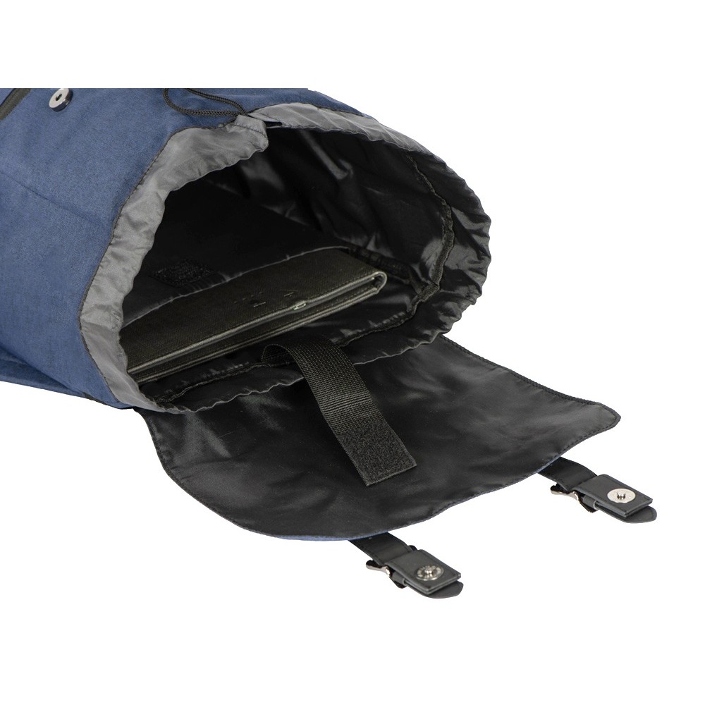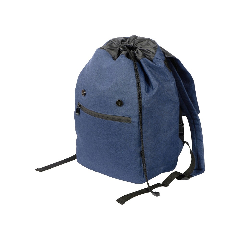 Легкий и вместительный рюкзак закрывается с помощью двух магнитов и стяжки-шнурка. Внутри расположен карман для ноутбука, который фиксируется эластичной лентой на липучке. Снаружи - карман на молнии. Лямки регулируютcя по длине.